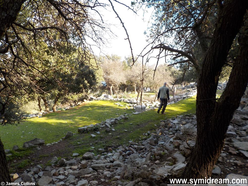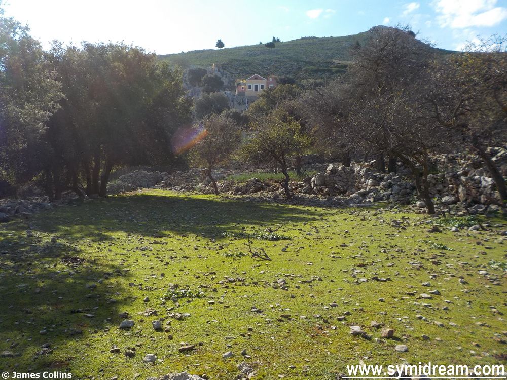 The weather here today looks like it’s not going to be anything like it was last Sunday when we went for a short two hour walk. This was out of the village to the donkey path, the lonesome tree and the viewpoint from where you can see Pedi, the village and Yialos, and then on past Ag Paraskevi. Here the path forks to the right through trees and circles around under the main road behind Yialos; there is no area name marked on my maps, but there is the ancient monument of the ‘Wall’ along here.