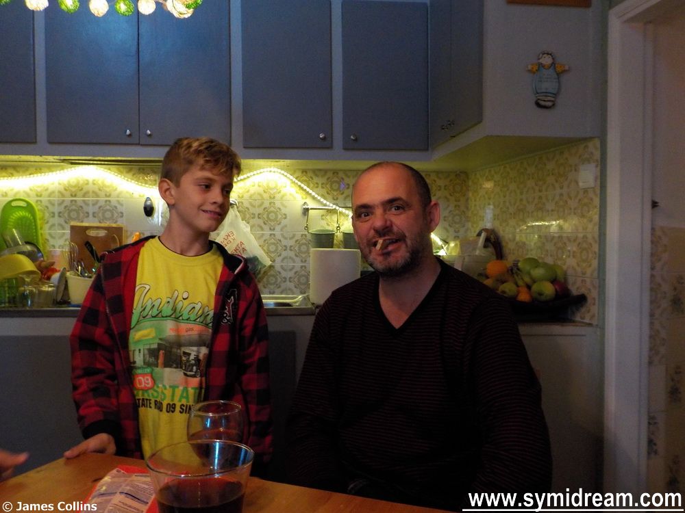 There was nothing painful about Christmas Day apart from some moments of side-aching hilarity supplied by the likes of Neil and the boys. The feast was courtesy of Jenine and Ian, the bar was supplied by us, and Santa did a good job with his contributions too. Down in Yialos there were community events, dinners, music was played from the church speakers and the bells rang out on Christmas Day from 4.30 in the morning, as they do. They’ve been ringing on an off since with celebrations of St Stephen’s day, Agios Stephanos here, and on Christmas Eve there were groups of children out and about carol singing.