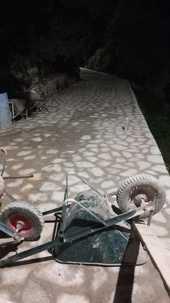 Beyond the barricade… is a brand-new lane. Smooth, neat, and hopefully, not to be dug up again for some time. I remember, it wasn’t long after the section by us was done that the added weight of the extra covering cracked a sewer pipe and had to be dug up and the pipe fixed. Hopefully, that won’t happen again. The road was open again by Sunday morning. I looked out on Saturday and saw the guys starting from up by the bins, which isn’t a huge distance, but still not close, and I thought, they might get it done by Tuesday. No. They were there from 7.00 to 17.30, about nine or ten of them, and they got it all done in one day.