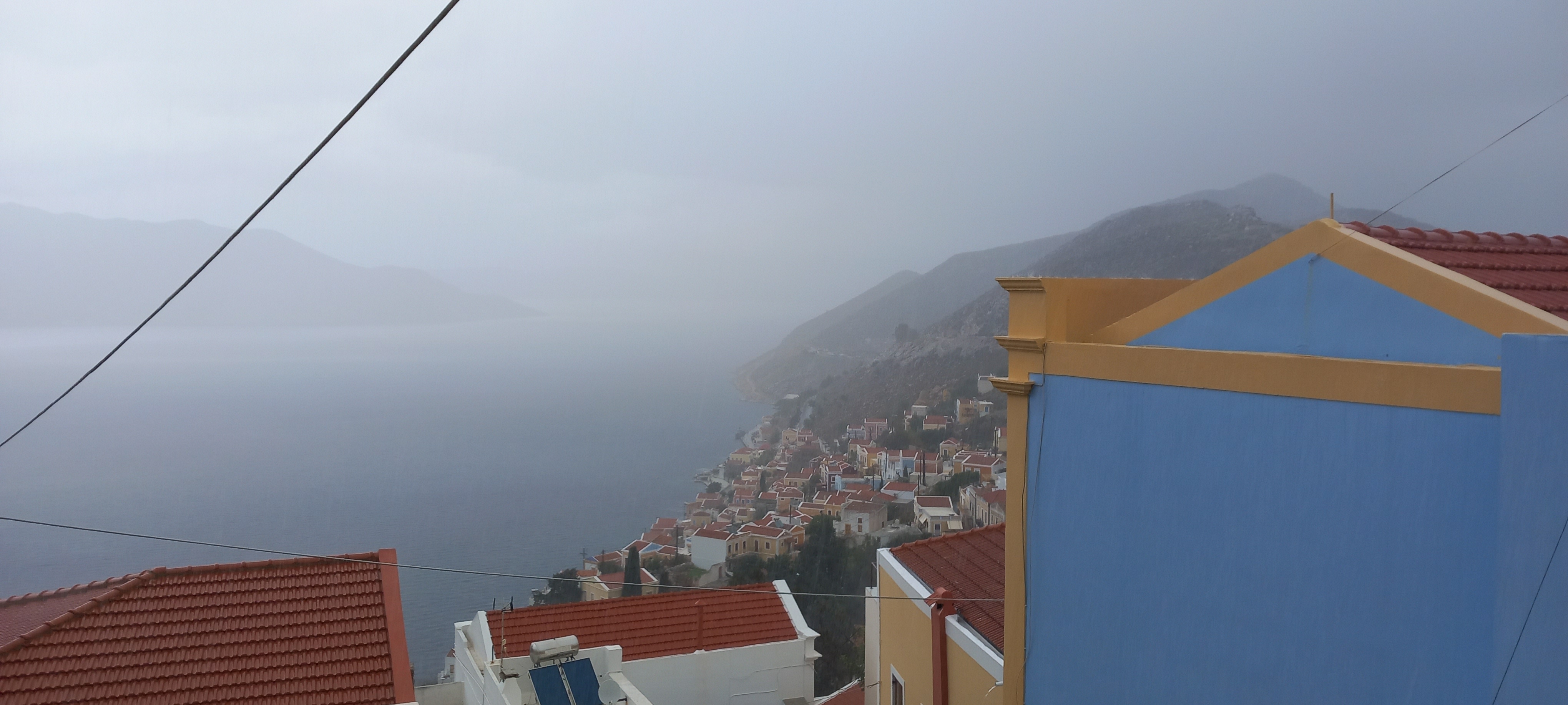 There are other words, but it’s too early in the morning to think of them, and I’ve woken up with a very obscure song from a pretty unusual musical stuck in my head. It concerns Mrs Overall from Acorn Antiques the Musical, which I watched over a week ago, and good though the show is, having just three lines of one song going around and around in your head from wakeup to whenever is something of a trial. So, I’m blocking that out, and I’m going to pame (go). I must get on with this book, then later, think about some light shopping, run the duster around the shelves, see if the washing’s dry, sweep the courtyard if it’s not too wet, tidy up a bit and think about shopping for quartermaster’s supplies ready for the boss’ return. The return may be on the Dodecanese catamaran tomorrow morning, or the evening Blue Star. I don’t suppose there’s a need to book a ticket for either at this time of year, so there’s no rush. It can all be done avrio.