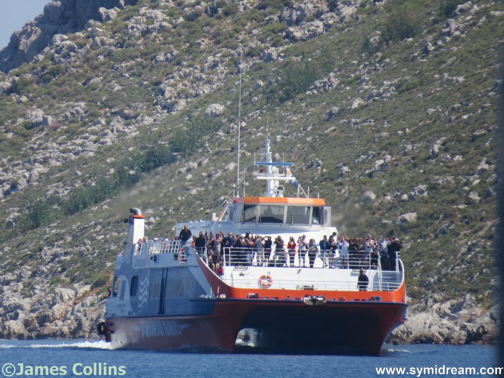 I managed to sleep through the Saturday night celebrations and dynamite, there was quite a lot of it apparently. I heard the bangs on Sunday night, right up until around half two in the morning, as I couldn’t sleep. Maybe too much chocolate mousse. There was a great firework display from the Town Hall on Sunday, plus their annual roast in the square and along the harbour. On Saturday, there were at least two day-boats in, if not more, and plenty of visitors and locals out enjoying the good weather and the Easter celebrations. The Blue Star made a trip to Kastalorizo for the weekend, and I know some Symi folk want on that, and the Panagia Skiadeni, now back to its Rhodes-Panormitis-Symi runs, was here as well.