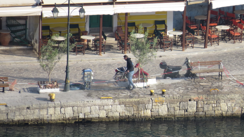Here we are starting another week. Our Prime Minister is due to make an official announcement later, outlining the lifting or not of the restrictions and where we go from here. In the meantime, I found some photos on my camera, taken from the balcony over the last week, and thought I’d share some of them today. A blue rock thrush, the view, and keeping the pavements clean. Some municipal employees are still able to work as are some builders, and now the weather is improving daily, outside is the place to be when you safely can – says he who managed two walks last week and has made a note to self to try harder. So, to start the week, a few photos to get you in the mood for whatever comes.