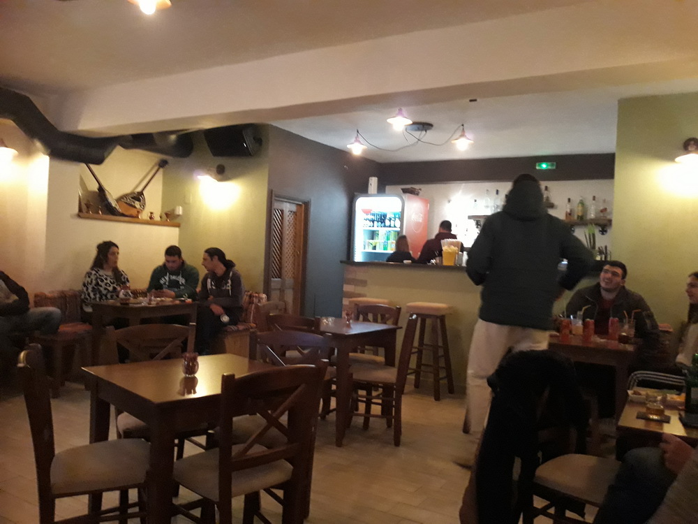 Wherein lies another winter’s tale. Noufris was very apologetic because he hadn’t been cooking and had nothing to offer us. His usual punters were there, snacking on whatever was lying around and drinking wine, playing cards and chatting, and we were invited to stay for a drink and share some liver as a mezethe. We talked about the winter and how quiet the village is, the weather, and hopes for the summer and before you know it, another jug of wine turns up with some bread but not, as it turned out, with any kind of bill or payment required. All very welcome as just about every part of me was aching by now; it’s alarming what positions one has to get into when putting together a desk.