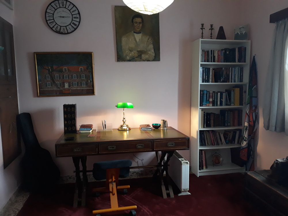 The next day, Saturday, I was awake up 4.30 having been dreaming about bolts and bits of desks that wouldn’t go together and got back to work. I was able to finish the desk apart from the two drawers, and put together a new cabinet so that by seven, it was all more or less done and we were able, finally, to put things in the right place. The only thing missing from my study now is the curtain (on its way) and the Chesterfield captain’s chair I have ordered, and which will be made to my specs. The delivery for this was meant to cost the same as the chair, so I wasn’t going to bother, but some friends are shipping things to in March/April, and it’s being delivered to them in the yUK and will arrive with their things in a few months. Meanwhile, I have a dining chair to use at the writing desk, and at the kneel-up stool/chair at the computer table, so we’re nearly there.