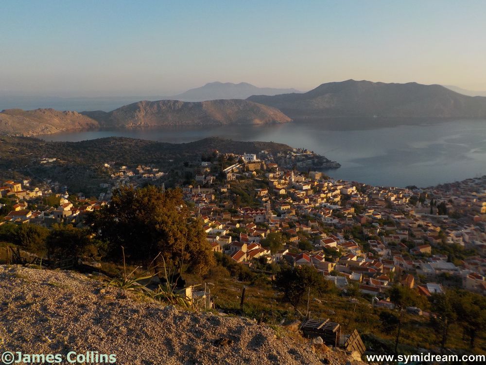Okay, back to home and a shower and down to work at the desk with the window open, overlooking the way into Symi harbour. From up here I hear the island ambulance siren, a rare sound but an unmistakable one. A little later and I’m getting on quite nicely with a chapter when I am suddenly brought down to earth by the sound of the Blue Star blasting its horn, up close and a little too personal. That comes in and does its thing and then it starts to head out again. At this point there are death bells ringing somewhere, probably for a memorial service as they are being rung in the morning. But, it’s not impossible that it was a funeral, through very early in the day – they are usually later in the morning, I’ve noticed. And then the Blue Star blasts it horn several more times as it is leaving, which is very unusual.