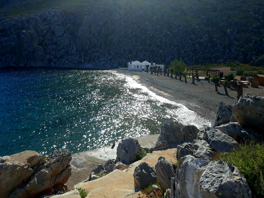 I have a couple of photos today that Neil took yesterday when he was in Yialos. As you can see, all was calm on the southeastern front. Cold, but calm. There’s a breeze from the north which is possibly to become a force five wind later, with the temperature being forecast as between 10° and a high of 14° over the weekend.
