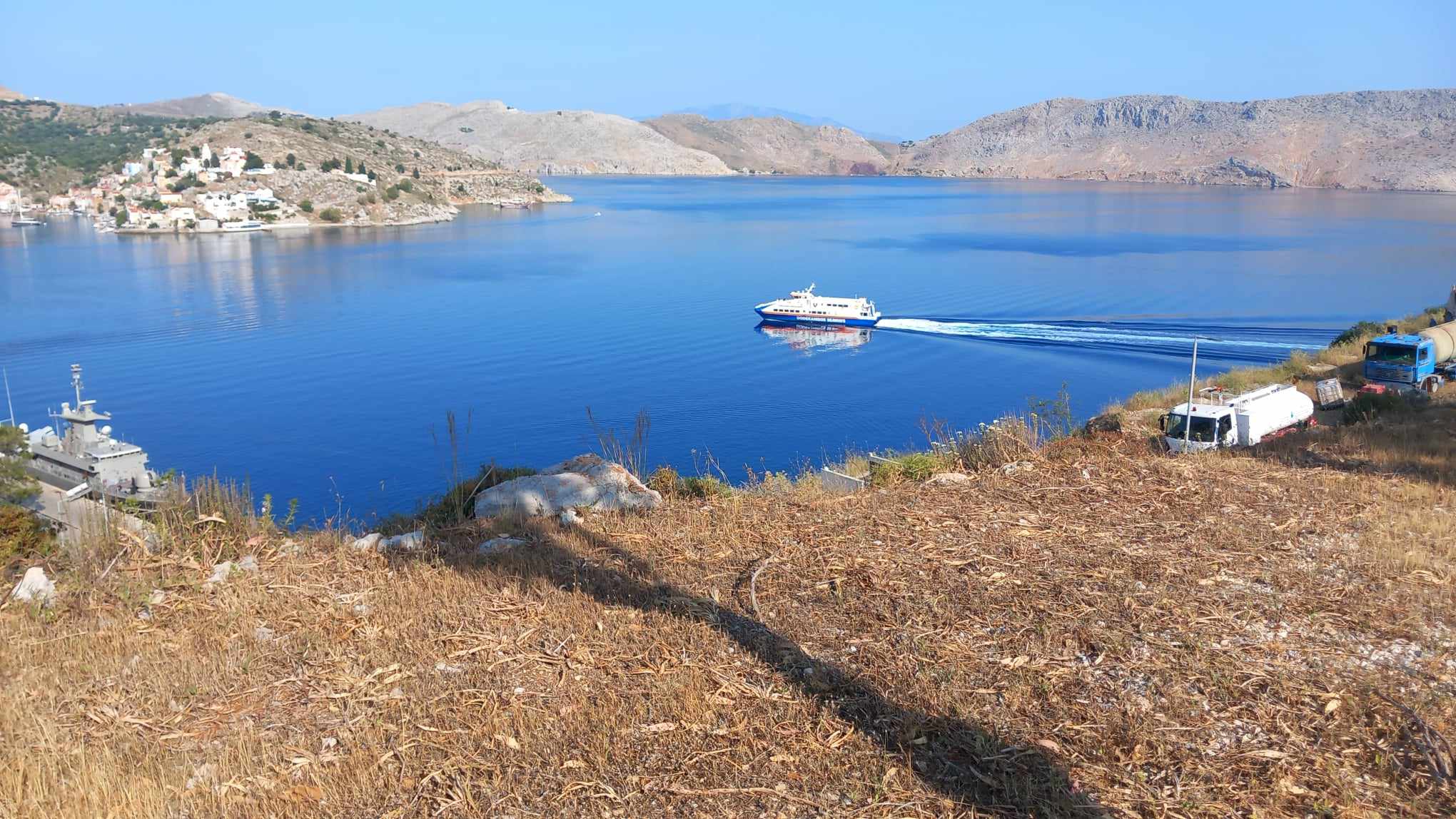 That’s irony #1 because of irony #2. While all this was going on, a local newspaper decided to announce the news that Symi was a disaster area, because of water (and we were not the only island mentioned). Odd timing. On first glance, it looked like the rain had made us victims of an horrendous natural disaster area, and I expect people were receiving messages of ‘stay safe’ (as if one wouldn’t), and ‘thoughts and prayers’ as if we were sinking.