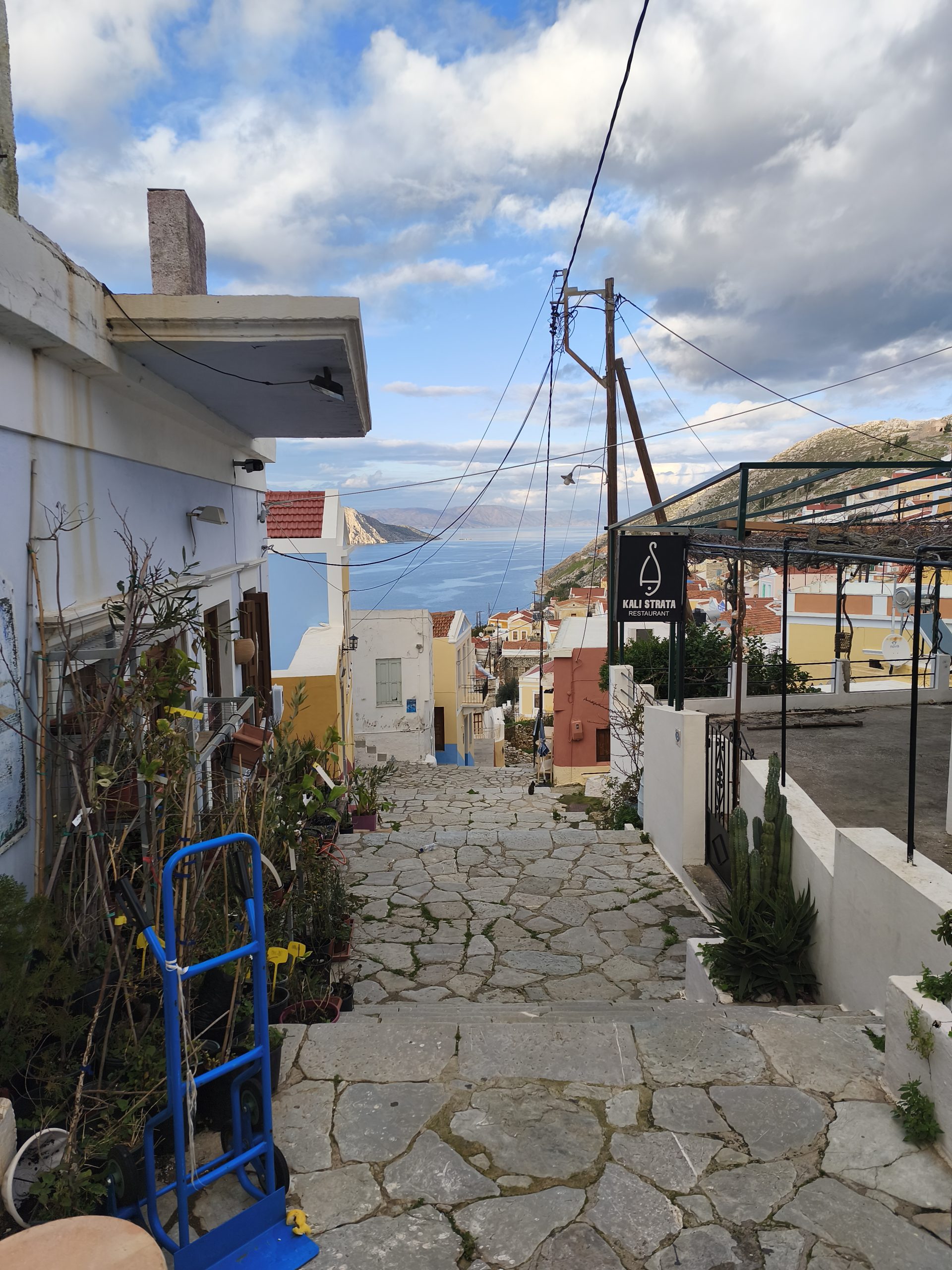 Also luckily, we don’t have to travel anywhere right now, because the ferries will be messed up. Apparently, the Blue Star isn’t arriving from Athens/north until 14.35 this afternoon, and isn’t leaving Rhodes until 23.50 tonight to come back. Recently, I saw someone asking about where they might eat during a forthcoming trip to Symi, and wanted to tell them to get here first, but I don’t want to put anyone off. All I’ll say is, if you are planning even a day visit to Symi in February, allow yourself an extra few days either side in case you get stuck by weather.