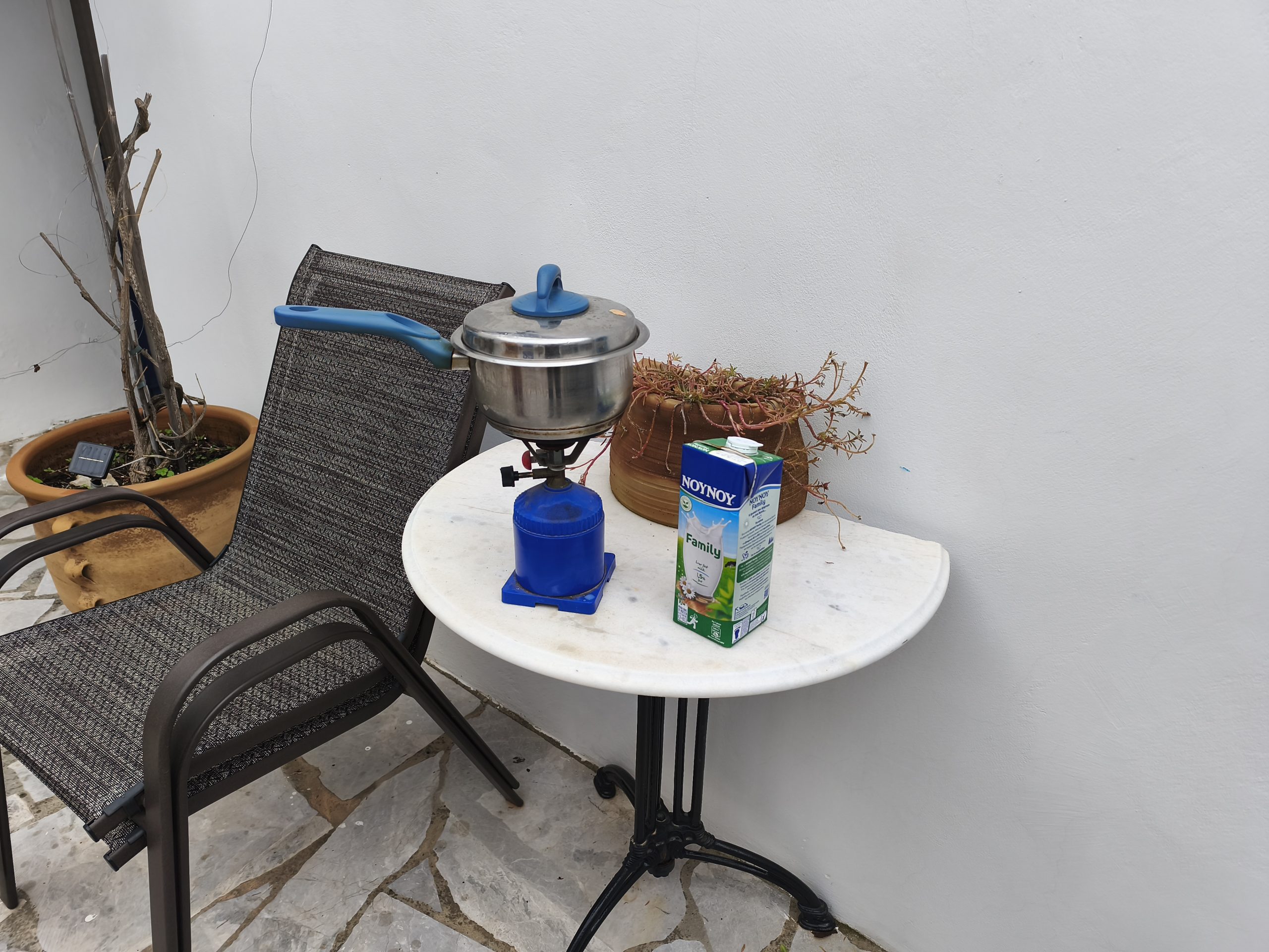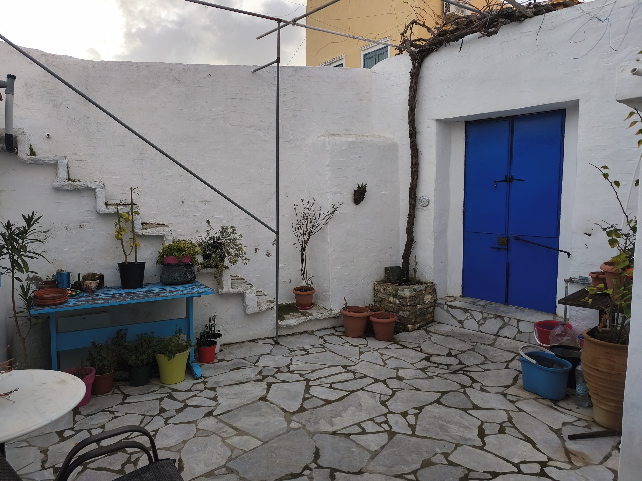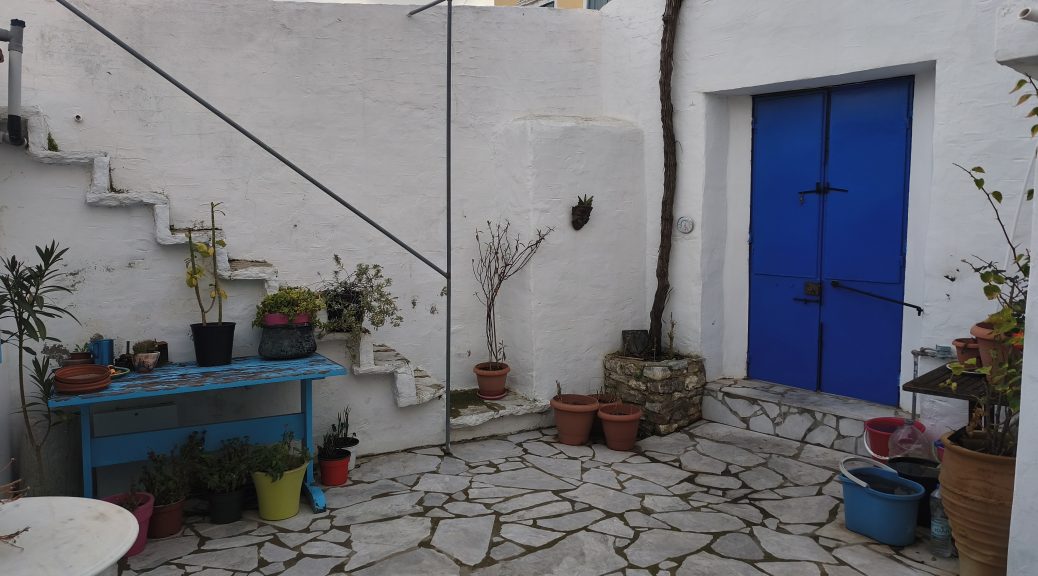 Once things start to brighten up, we’ll set about tidying the courtyard and readying it for the summer. This will entail moving that hosepipe I bought in September and never got around to putting away, and sweeping up the collection of leaves that gather behind the table in that place that’s really awkward to get to so we leave it alone. Then, there are the buckets to empty, clean and refill, ready for the lack of water storage problem because still no sign of a larger tank or a repaired sterna, so we’re still rationing it, particularly at the weekends when we have no refill for two and a half days.