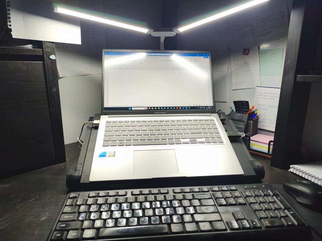 Soon, too, we’ll be able to open the shutters and let some daylight back into the house. As it was a bright and mild day yesterday, I opened my office curtains and window, because I wanted to highlight the dust that’s accumulated over the past few weeks. No, actually, it was just to air the room, because we don’t want the ceiling going mouldy again.