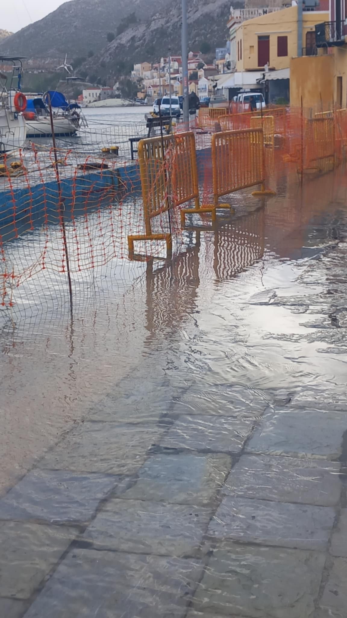 It’s still all about the sea. Yesterday, a shot of the flooded part of the harbour, today, the Blue Star Patmos (below). This’ll be old news to Facebook fanatics, but yesterday, the Patmos bumped a harbour wall while trying to land at Kastellorizo in a force six wind. Some of the translations refer to the bump as ‘ran aground’, which it didn’t. The images are of a scrape near the rear end, rather than the thing washed up and listing on a deserted beach. As far as I can make out, it remained unberthed while the authorities did whatever they had to do to make sure passengers were safe. That must have been frustrating; being stuck only a few meters from your destination and unable to get off. The same happens now and then in Rhodes, when we hear of the boats sheltering up near the airport, when they should have been in Akandia, but the weather turned.