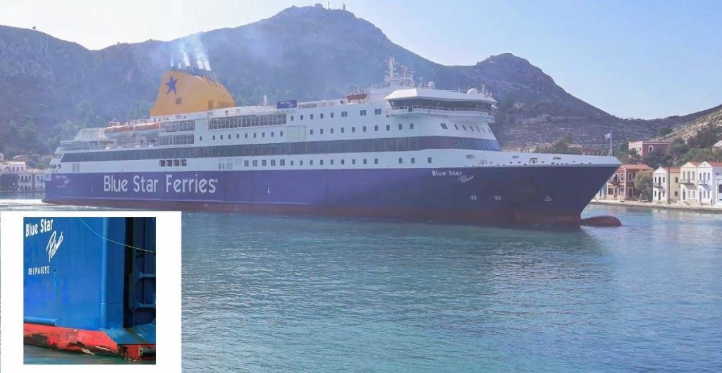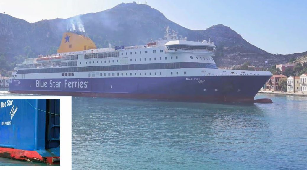 The knock-on effect of this slight bump is that the Patmos had to change its timetable slightly. There is information on the Blue Star Ferries website. (It appears to be back to normal on Friday.)