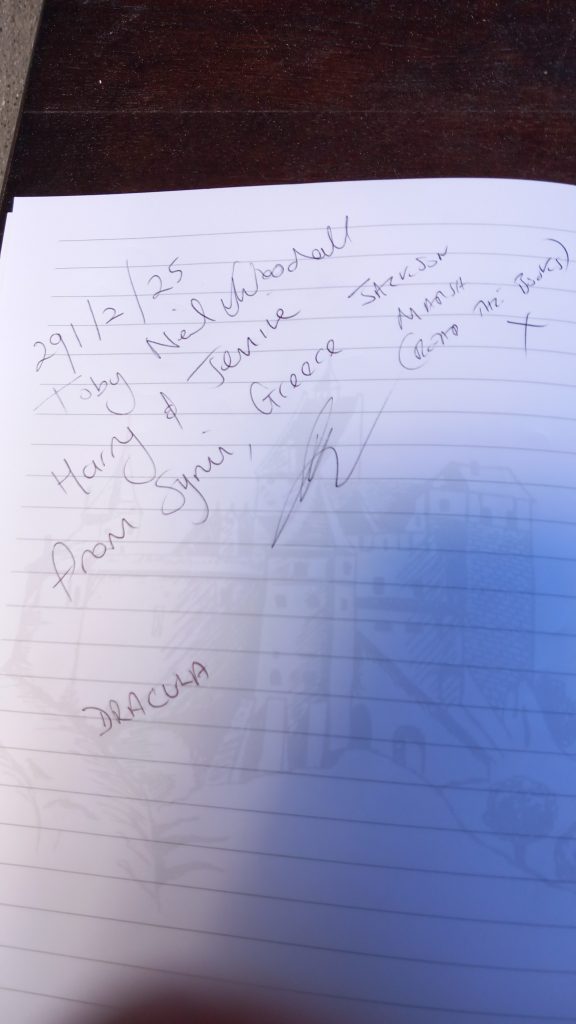 Now, you may remember when I started telling you about this adventure, I wrote: It’s ten past six on the morning of January 2nd, 2026, and our party has gathered outside an unusual hotel ten minutes’ drive from Athens airport. Well, that’s where we are now.
