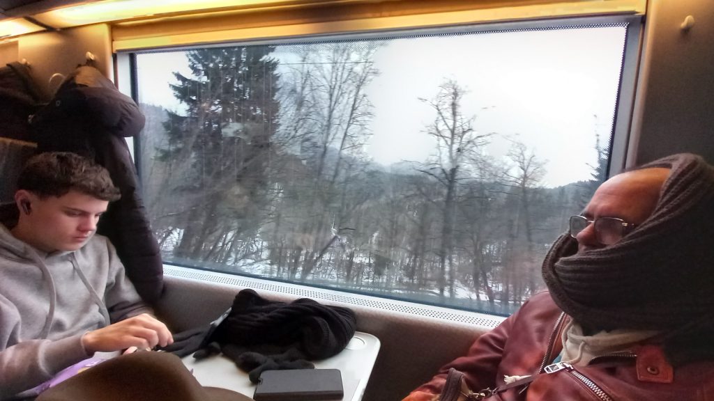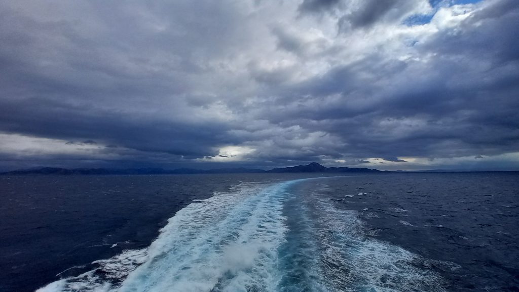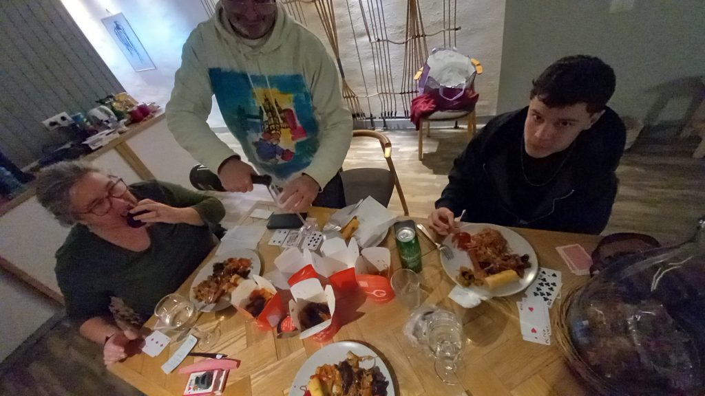 While H the teen goes home to no doubt pound his X-box for the rest of the day (still not a euphemism), we now have a whole day to kill in Rhodes, but what we really need is a good sit down. A day off. But not until we’ve at least gone for a walk. Unfortunately, we find the shops closed, but it’s a blue-sky day, and there’s no need for scarves and snoods, gloves and hats, though I wear my new one relentlessly until we return to the hotel, there to have lunch and settle down to watch a film. Waking an hour later, we catch the end of the film, but have no idea what’s going on, and so, washed and changed into whatever is still clean (not a lot), we spend the afternoon in the bar until it’s time for a glass of wine and a game of cribbage. Jenine has carried our wooden crib board and the cards with her throughout the trip, but there’s never been time to use them. Train journeys, even though several hours long, seemed to pass by in a blink, and there was no room on the overnight one. Also, now is the first time we’ve had a chance to sit and do nothing, and boy, do we need to. Cards, dinner, a little chat, and an early night, and before you know it, we’re back in another taxi, this time heading for the ferry. Later, a Lakis Travel transfer up the hill, and we’re home.