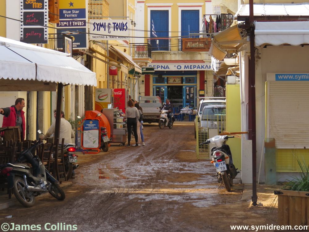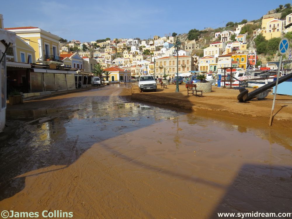 Sunday morning. The sun is trying to come up, and the view is lightening (6.30 a.m.). So far I can see heavy clouds, we’ve had a little rain and some distant thunder, but we are expecting more over the next two days. Hopefully, it will only be enough to wash away the mud and won’t hamper the clean-up operation, or lead to any more mudslides or rockfalls. Today, I wanted to put up some photos so you can see the difference between last week (which is shown in Saturday’s post’s photos) and Friday when I was last in Yialos.
