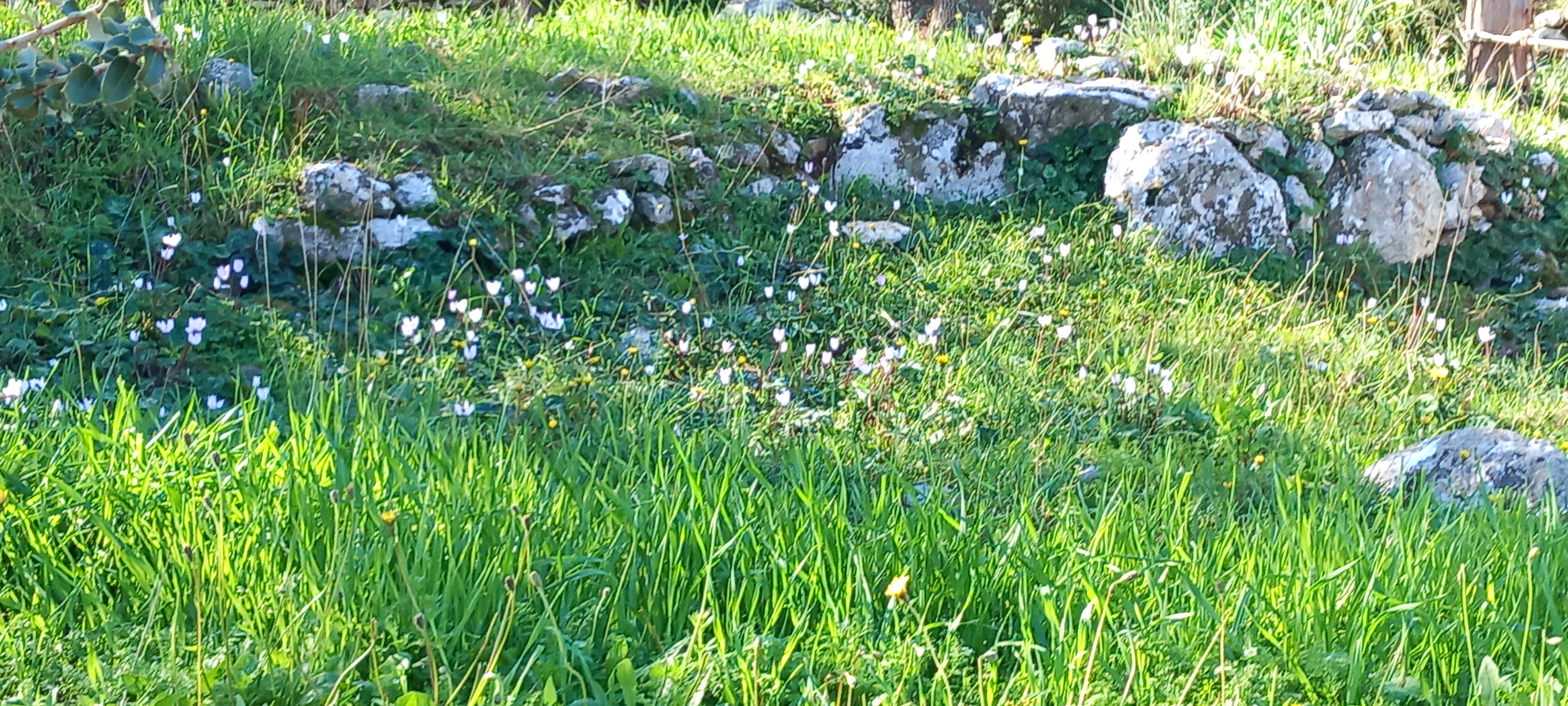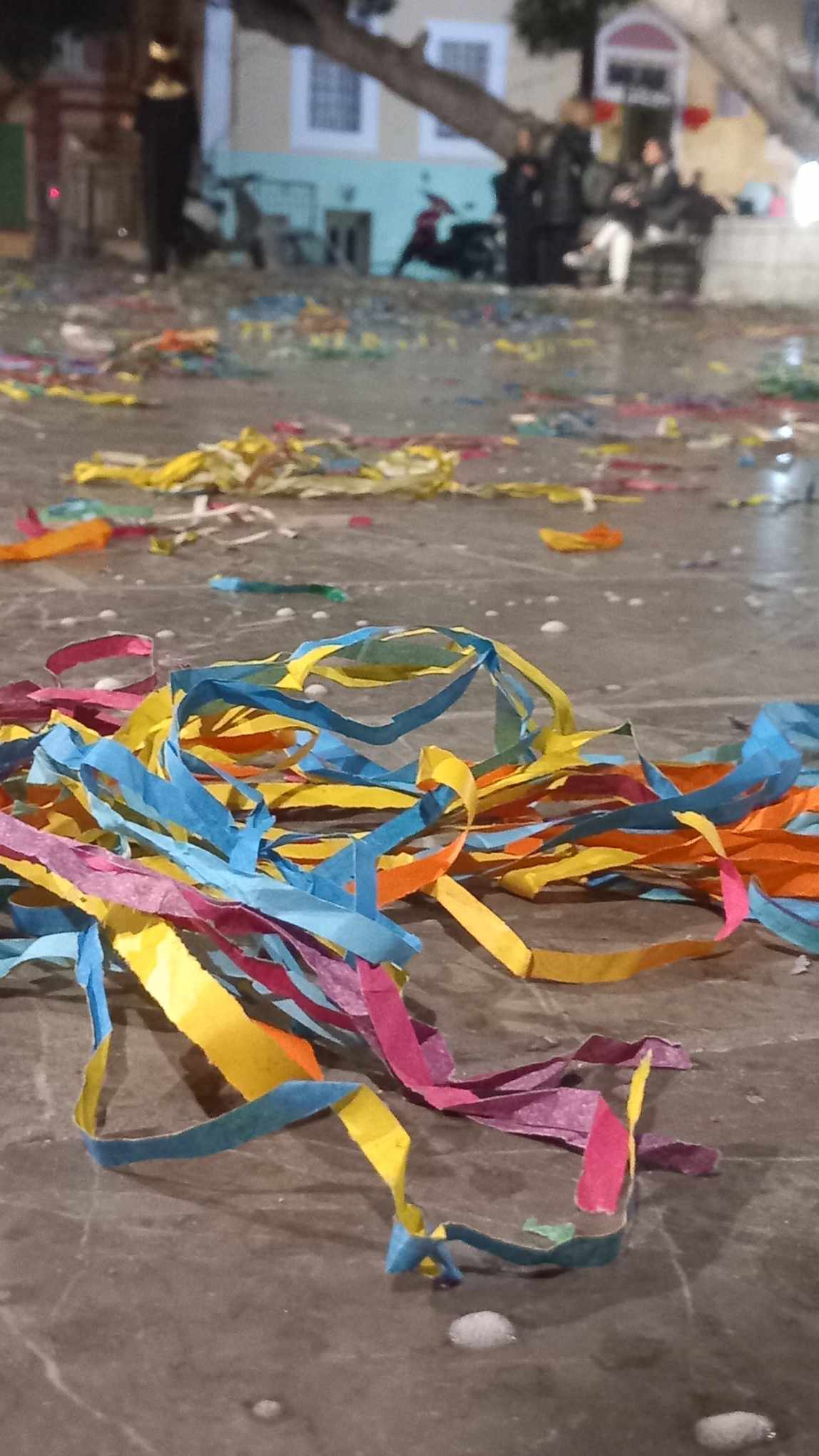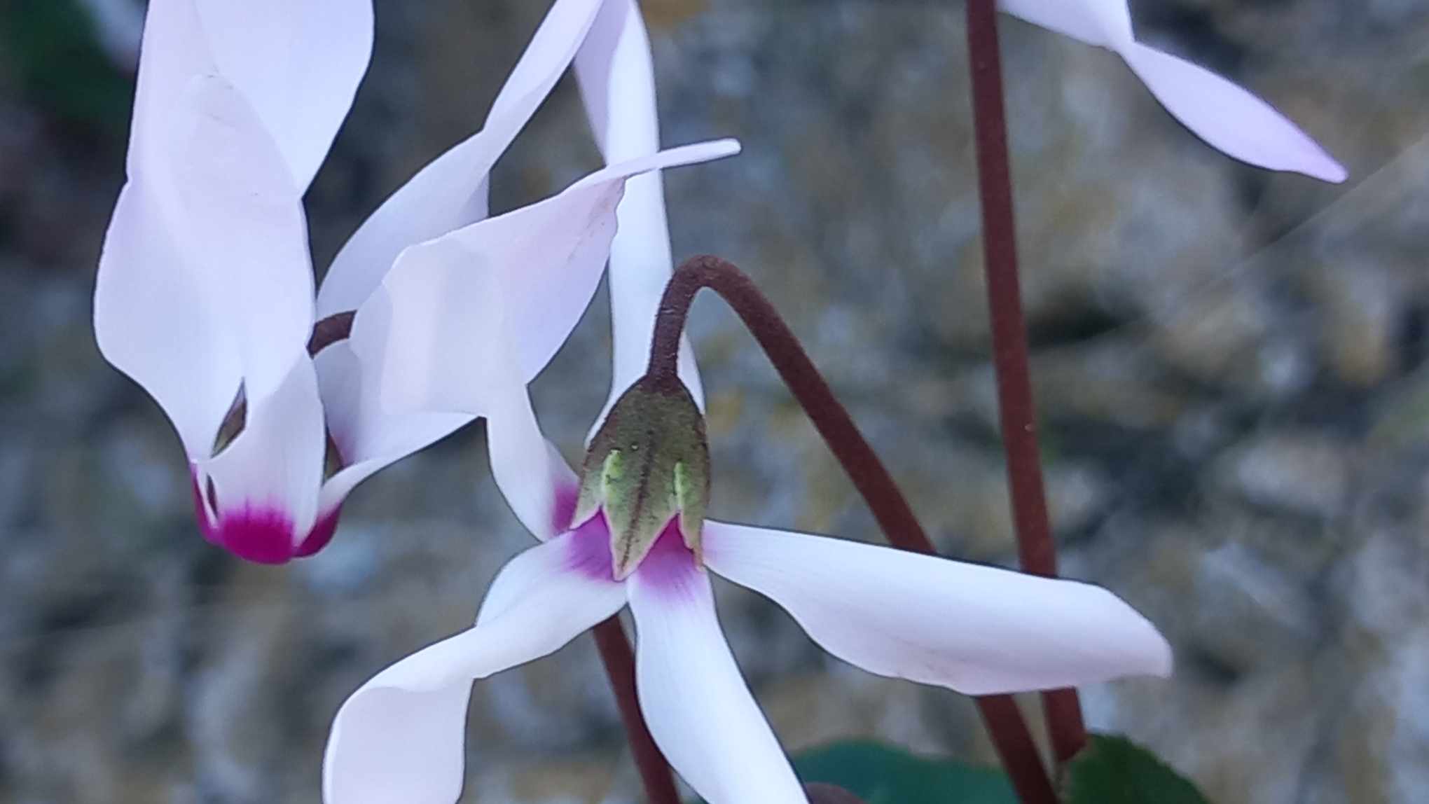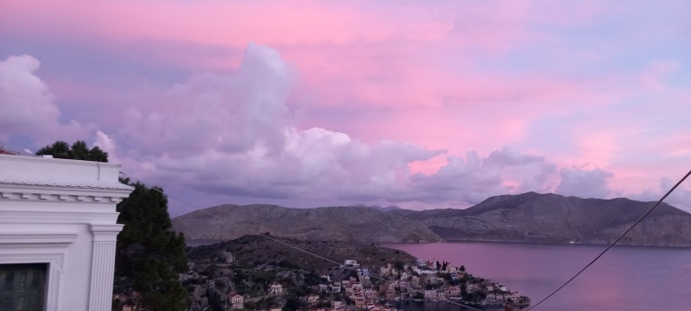 Meanwhile, the photos. Some streamers left over from a party or early carnival event, our first hibiscus flower of the year, a cyclamen seen with many others during a walk, a pink sky of a few months back, and the green of spring out there in the Pedi valley, or nearby, I can’t remember exactly. I’ll leave these with you as I set about my notebook and research material.