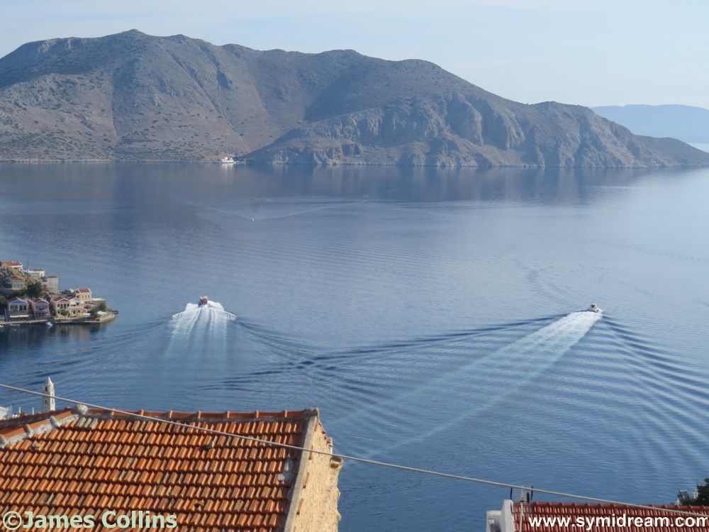 And, as you can also see, the taxi boats are going out. This was early in the morning, so there must have been something special taking place somewhere; one went across to Analipsis and the other out of the bay to somewhere else. One was running back and forth to Analipsis all morning yesterday.