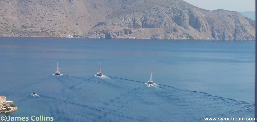 The flags are out at Agia Marina, so I assume there’s a name day or a festival day today, or this weekend. Perhaps that’s why there are so many boats around? Or it could just be the fact that Symi is a great harbour to call into, has many bays to stop in and places to explore and is just so popular. Or a mixture of both.
