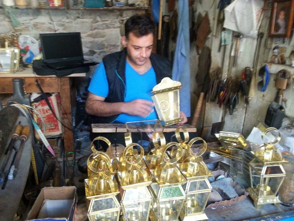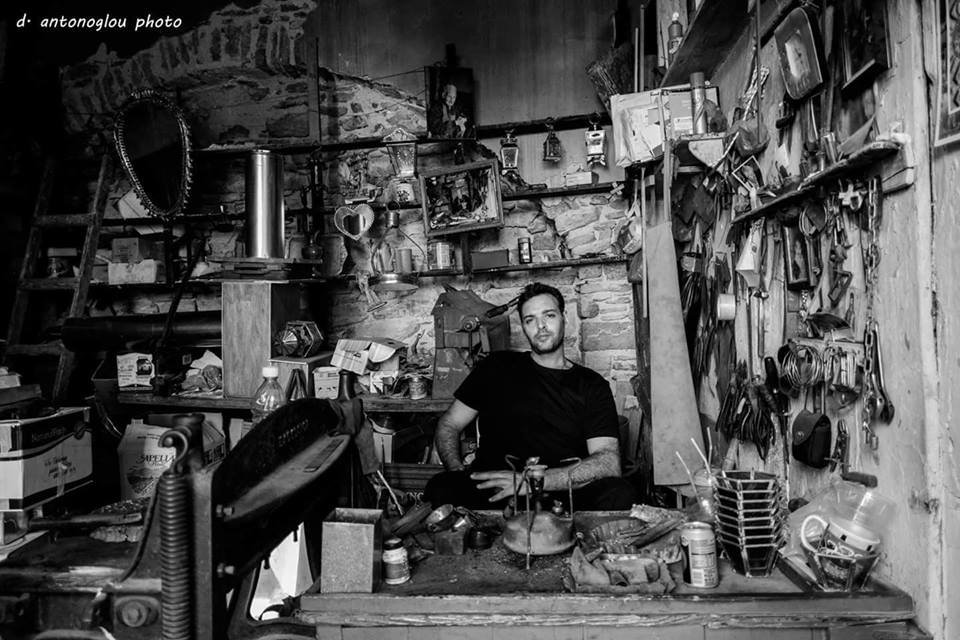 Yiannis took over the whitesmith business in Yialos from his grandfather a few years ago. This is the workshop/shop in the backstreet that runs parallel to the sea. You can find it at the end of the lane that runs from Pacho’s to Taxas, but you will only be able to find it there until the end of September. We chatted with Yiannis and his wife, Honnie, the other day and they have sent me the following message: