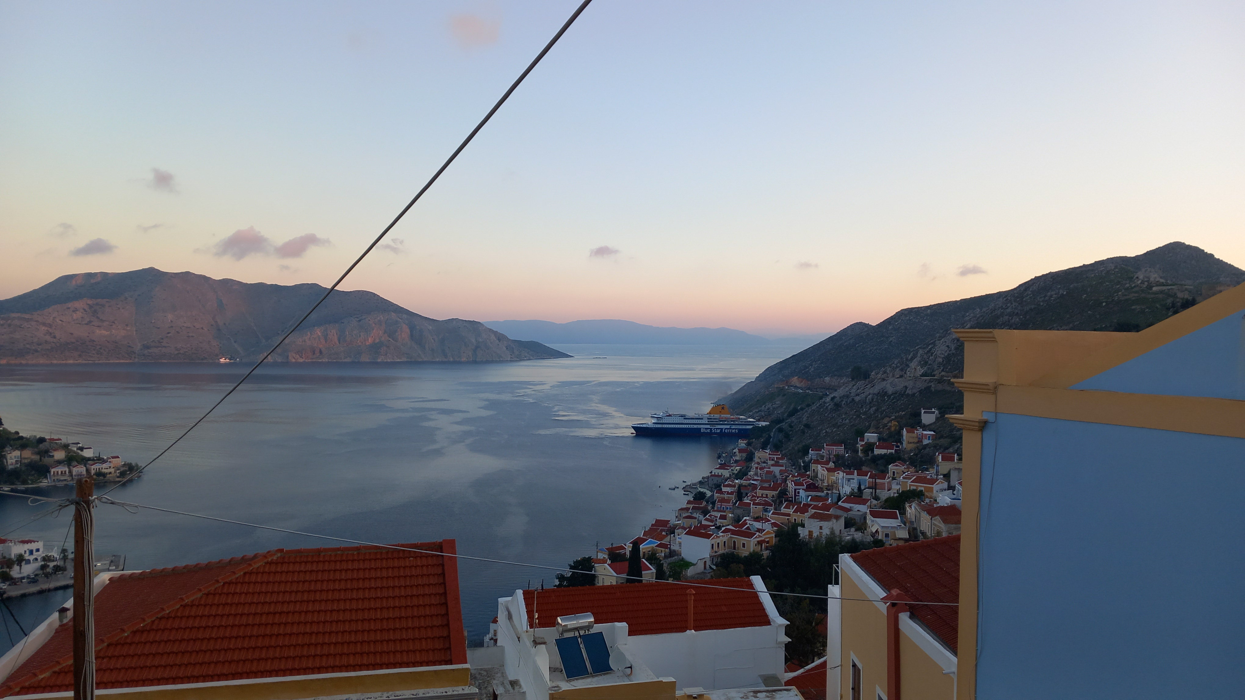 I have a quiet weekend planned. That is, a weekend where, apart from a few odd jobs, I have nothing to do. Next week is a little busier, and I will report on that as and when. Today, there’s not a lot to tell you. The Blue Star has just come in on its way to Rhodes, the sea is flat calm, as is the weather, and it looks like we are going to have a pleasant weather day. It was 16° yesterday, though it’s still humid, so the windows are misted in the morning, and the dehumidifier has come into play.