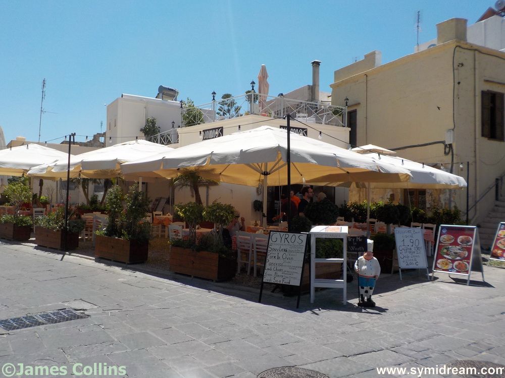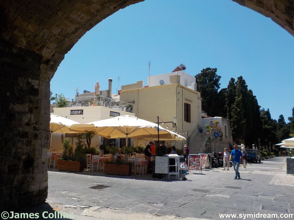 I was wandering around Rhodes on Wednesday after spending the night there on Tuesday so as to be in time for an appointment the following morning, when I had that thorny problem of where to have lunch. I wanted to go to somewhere I’d not been before but somewhere close to the Commercial Harbour so I wouldn’t have the worry of being late for the boat which was at three. Heading through the Old Town I also realised that I wanted to avoid the busier places, the kamaki and the shouts of ‘Hey mister, do you want to meet my daughter?’ when I remembered a taverna right next to Acandia Gate that I had passed in on my way across on the Tuesday. ‘Not been there before,’ I thought, ‘and it’s handy for the boat.’ So I duly arrived at a new taverna (under new management that is) called Nimmos.