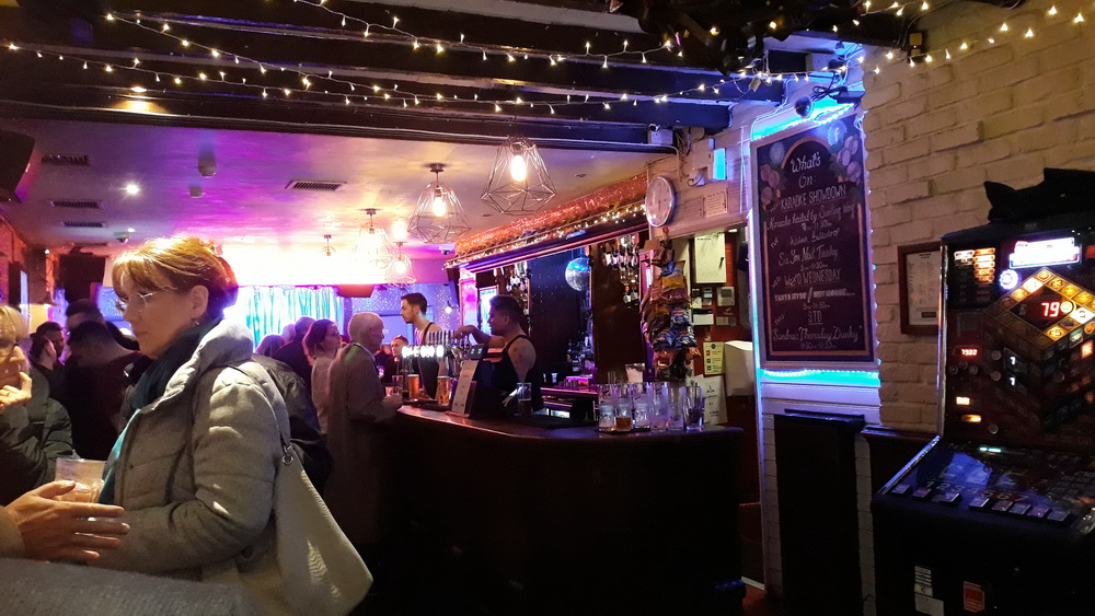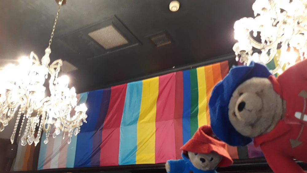 We called in and ordered a couple of glasses of pre-show wine. I was on the verge of paying the barman when some straight guy told a lesbian that ‘All you need is the right man,’ and presumably offered his services. All hell broke loose. Our barman, diminutive and slightly fay, was over that counter before you could say ‘mine’s a double’, the queens, bless ’em, dragged the str8 and his mates out into Compton Street, and within seconds, a police van had pulled up to much ‘Ooh,’ and ‘Hello…’ from inside. Calm was restored, and I hope the str8 got what he deserved (from the police if not the lesbians with whom, btw, one does not mess). We’d still not paid for our drinks, and when the barman had calmly tucked his hair behind his ears and reconnected with his charming smile, I went back to the bar to pay, asking if he was okay. I earnt myself a ‘Yes, thanks, darlin’. Bloody breeders.’ Nothing like a good West End fight to bring back fond memories of the old days.