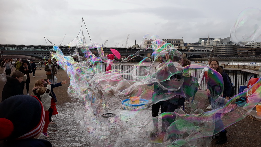 Still moving on, the boys enjoyed the views, buskers and bubbles and we enjoyed the walk which took us all the way to the South Bank complex and the Hungerford Bridge.
