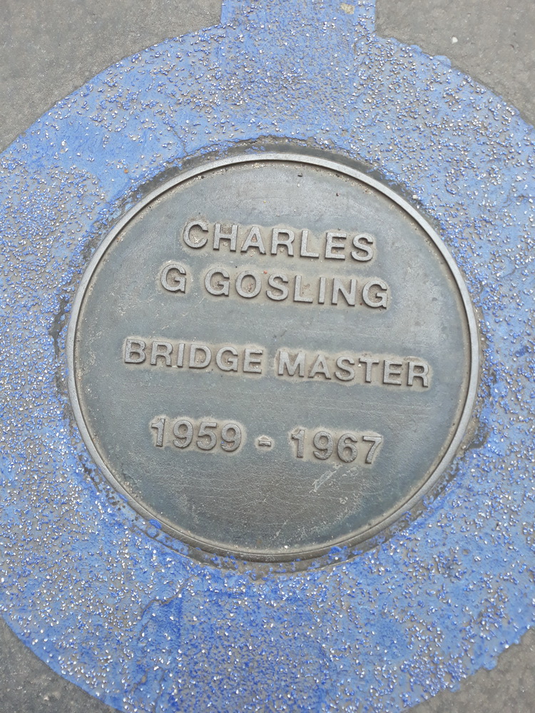 Coffee, check. Kebab, check. Paid the check, check. Walk across Tower Bridge, check. Tourist photos, check. What next? The same journey but in reverse and on the other side of the river. Oh, talking of Tower Bridge, we found this plaque among many commemorating those who had built and worked on the bridge since it was started in 1886, opened in 1894 and ever since. (It too makes an appearance in a Clearwater book, while under construction in 1889.)