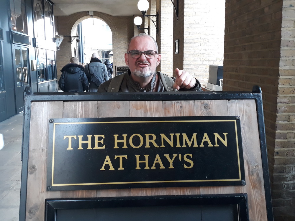 The southside walk is more interesting than the north bank walk, what with the Globe theatre, street entertainers and the like. Of particular interest was the Horniman At Hay’s, simply because of the double entendre.