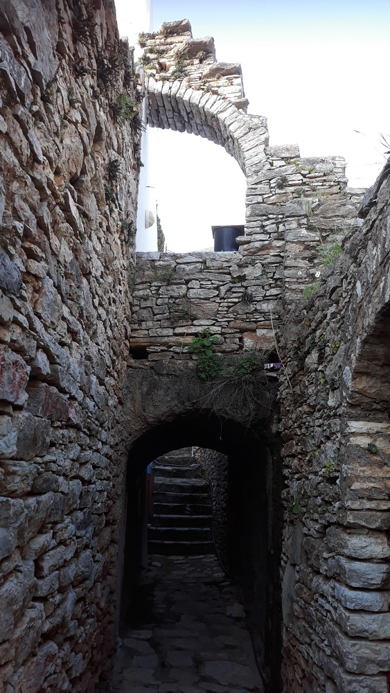 I was thoroughly spoiled, had so many messages on Facebook it was impossible to reply to them all (thank you!), and Neil wouldn’t let me do a thing, though I did have to put the washing out as it was a good drying day, it was only three things, so no great hardship. I was on a walk the day before and passed by where we used to live, right up at Ag. Triada. I passed under a tunnel attached to our old house and remembered a photo Amanda (of the Windmill fame) took around the time of my birthday 18 years ago when I’d just turned 40. I posted my photo, and she came back with the one she had taken all those years ago. It feels like only last week.