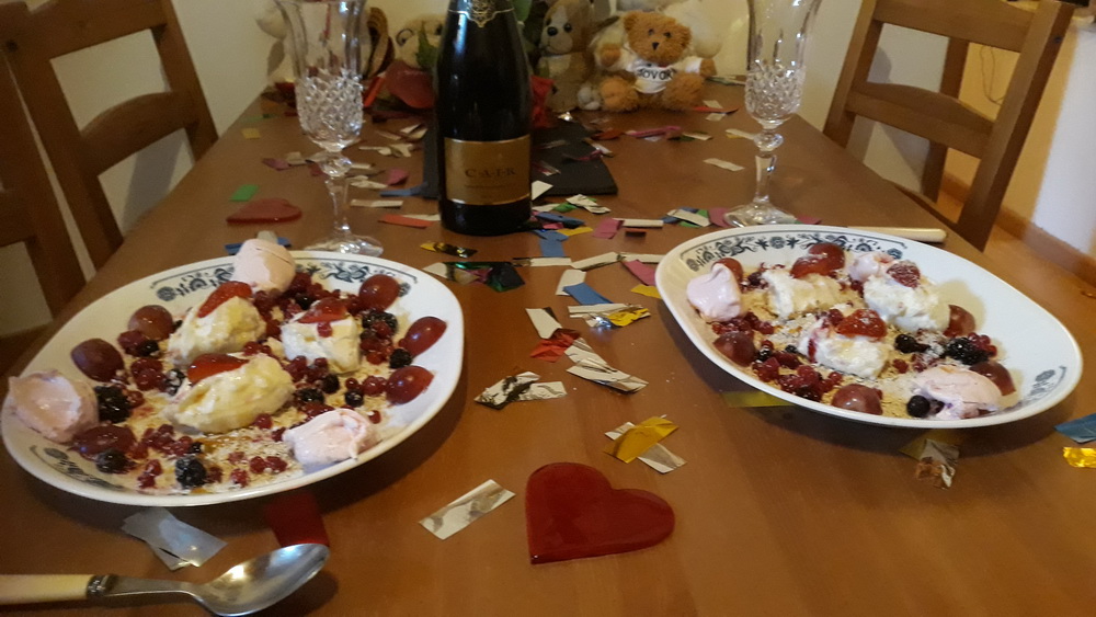 I don’t know about you, but I had a lovely weekend. It’s currently Sunday morning at 5.30, except that’s really 4.30, but that doesn’t matter. The earlier I get up, the more time I have for the day. My weekend started on Friday, which you may have noticed was my birthday. My husband certainly noticed, and the day began with breakfast where the table and kitchen were strewn with glitter paper, the bears were invited, and we had yoghurt, fruit, honey and homemade meringues.
