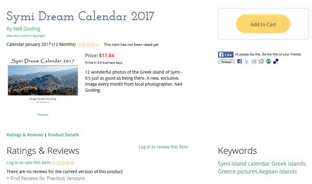 These are two calendars from Neil who has been producing a popular Symi calendar for a few years now. You will see links to them over on the right of this page, beneath the advert for Symi 85600, which remains my most popular book to date, but it’s not about me today it’s about Neil’s calendars for 2017. Click the links over there >> (I’ll also give them at the bottom of this post) and you will get to the Lulu page where they are sold from.