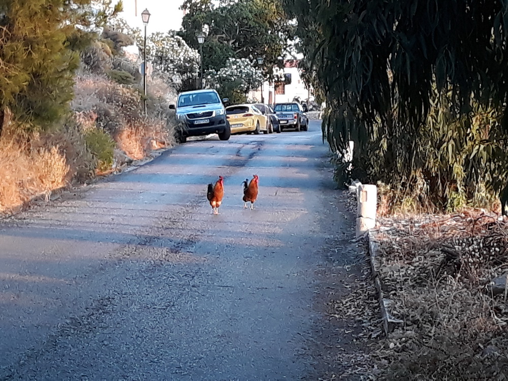 Yesterday morning, I went for a wander up the road at six, seeing hardly anyone on my way, but saying hello to those I did. There was some chicken congestion at Leoni, some wary cats at the bins above, and a few young goats pottering around near the quarry. That was about it. On the way down, I was passed by the army officers heading up to work in their camouflage and in a variety of vehicles, mopeds, cars and the army truck for those without transport. The sun was coming up over Pedi as it tends to do, giving everything down there a golden glow, and by the time I reached Campos and the bus stop, the day workers were there waiting for their lifts to farms and building sites across the island. A usual, summer morning walk and already hot even at that time of day.