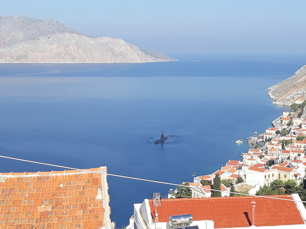 As you might have seen on our Facebook page, a submarine paid a visit the other day. Apparently, it’s always out there on patrol and only surfaces occasionally at Symi. Nothing to be alarmed about.