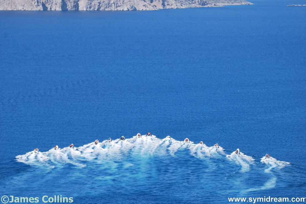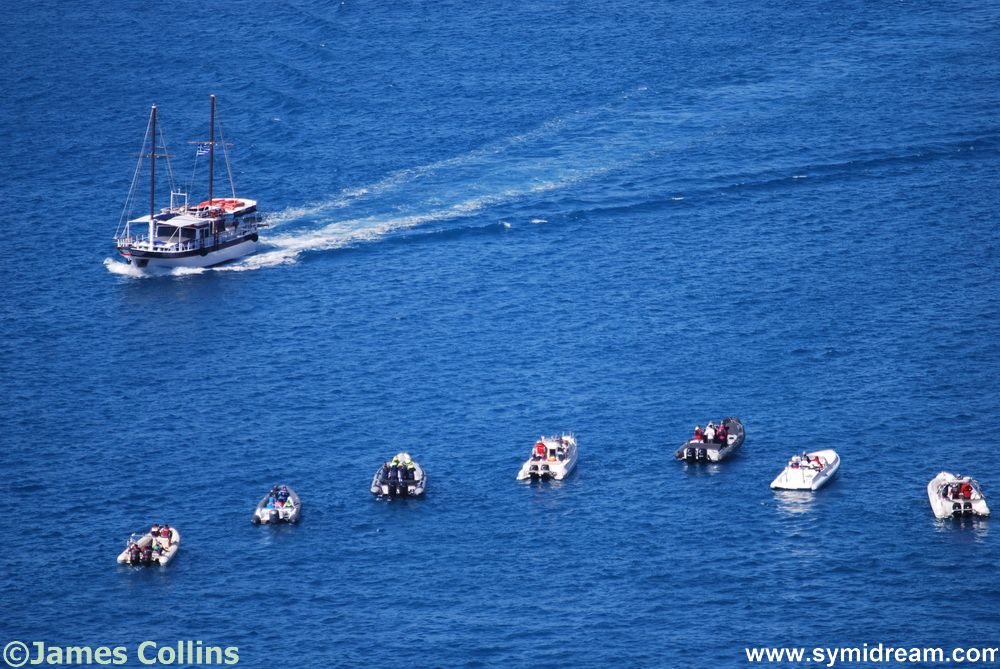And here are lots of shots of the speedboats leaving on Monday. These were carrying doctors who held a clinic, I am told. I hope they had their equipment well stowed as they finally took off at a bit of a speed. They passed the Poseidon as it came back from a trip and I saw it going out again on Tuesday. Looks like the round the island excursions have started, as long as the weather is calm and there are enough people.