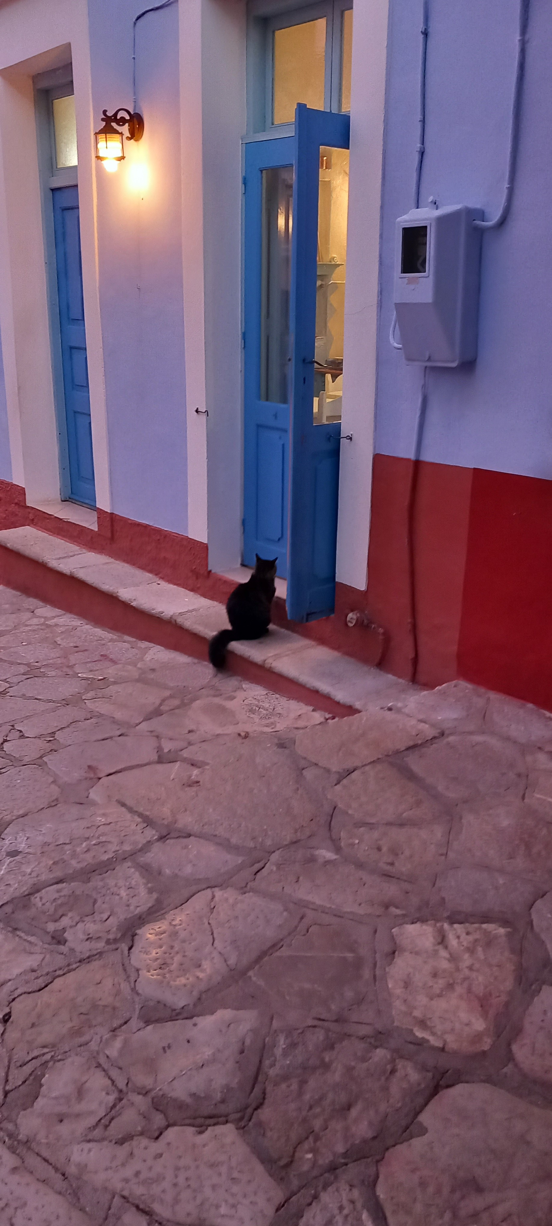 Our neighbour’s cat was also out and dressed for a date, and when I saw him, waiting patiently for a table at the taverna…
