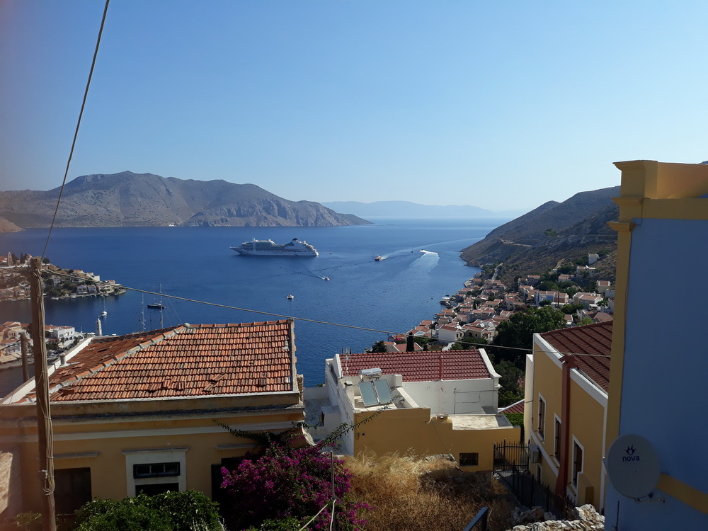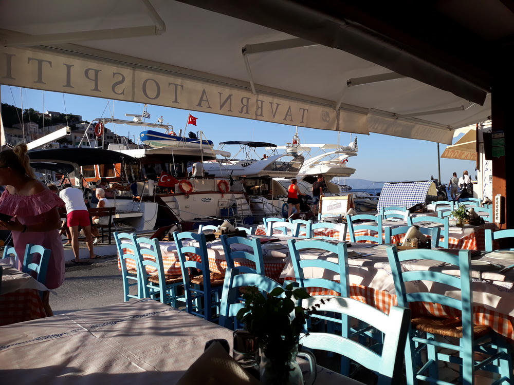 Down in the harbour, the gin palaces have been coming and going along with the Turkish gulets, cruise ships, day boats, taxi boats and fishing boats, and there’s the usual summer hive of activity. Up in the village, the evenings are busier in the square, and some day-trippers are managing to find us, there’s live music every Friday night at Giorgio’s (book early), and also at the Secret Garden (book early) where they also have an open mic night on a Monday. A new music venue is, apparently, to open this month by the playground, and all the other bars, cafes and tavernas (Zoi) are open for business as usual.