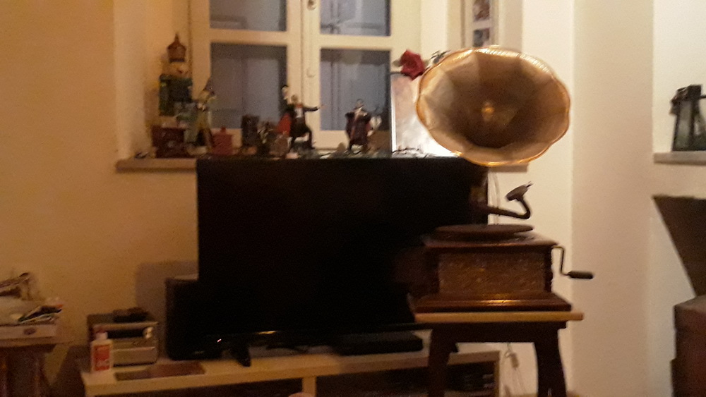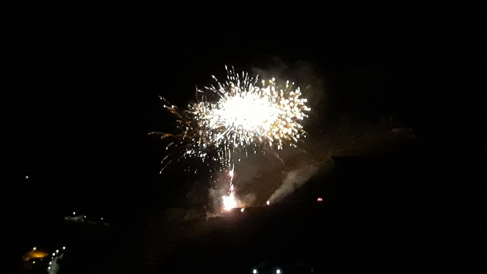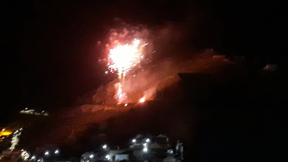 Monday night also saw the traditional ‘burning of Judas’ ceremony/celebration, and the end of Easter was marked with a firework display set off on the main road so it could be seen from everywhere in the harbour and from most places in the village. (Sorry for the blurred images; they were taken on my phone.) After all that, we went home and listened to 78s on the wind-up gramophone because we’re right up to date with our technology.