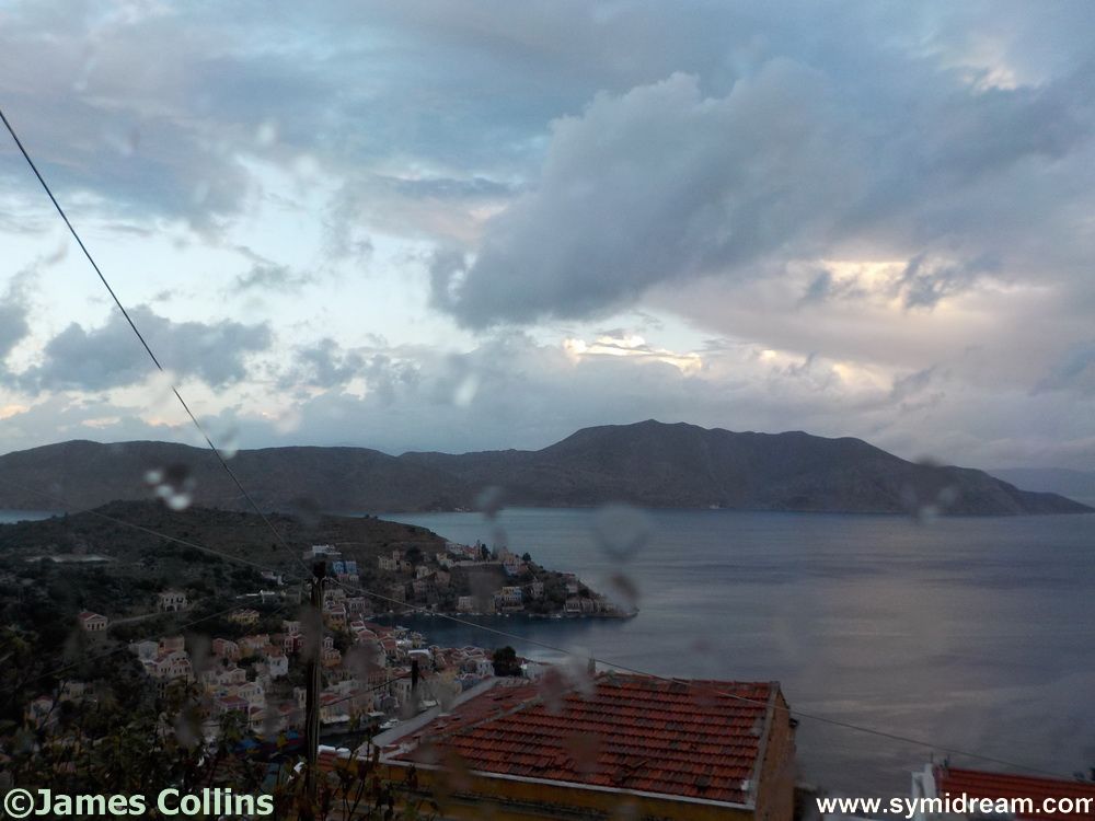 Symi news? Well, it finally rained again on Sunday evening and overnight. The hole by the rainwater-to-sterna feed in the roof that I thought I had fixed, leaked again but not as much as before and only into a corner of the utility room where there is existing evidence of water innage. (Innage is a word I like and may have just invented in this context. I know that ‘Inning’ (in Romney Marsh terms) means to irrigate, so yes, there was some water irrigation event happening during the night which we might call an ‘innage.’) Perhaps there is a problem with the roof at that point. Investigations will be forthcoming. [by the way: Innage (n) The quantity of goods remaining in a container when received after shipment. Aeronautics. The amount of fuel remaining in the fuel tanks of an aircraft following a flight. Thank you.]