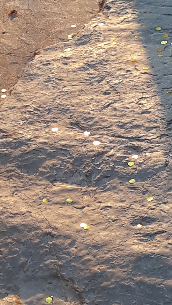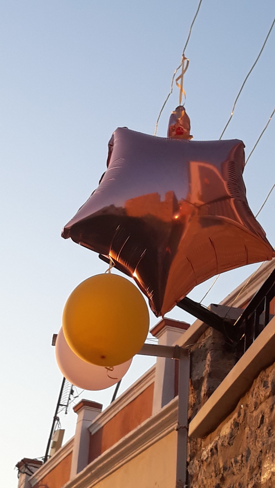 I saw a couple of other usual sights on a walk on Monday morning. There must have been a party or wedding, baptism or other celebration up towards the top of the village as the road was paved with gold. Well, gold confetti and balloons.