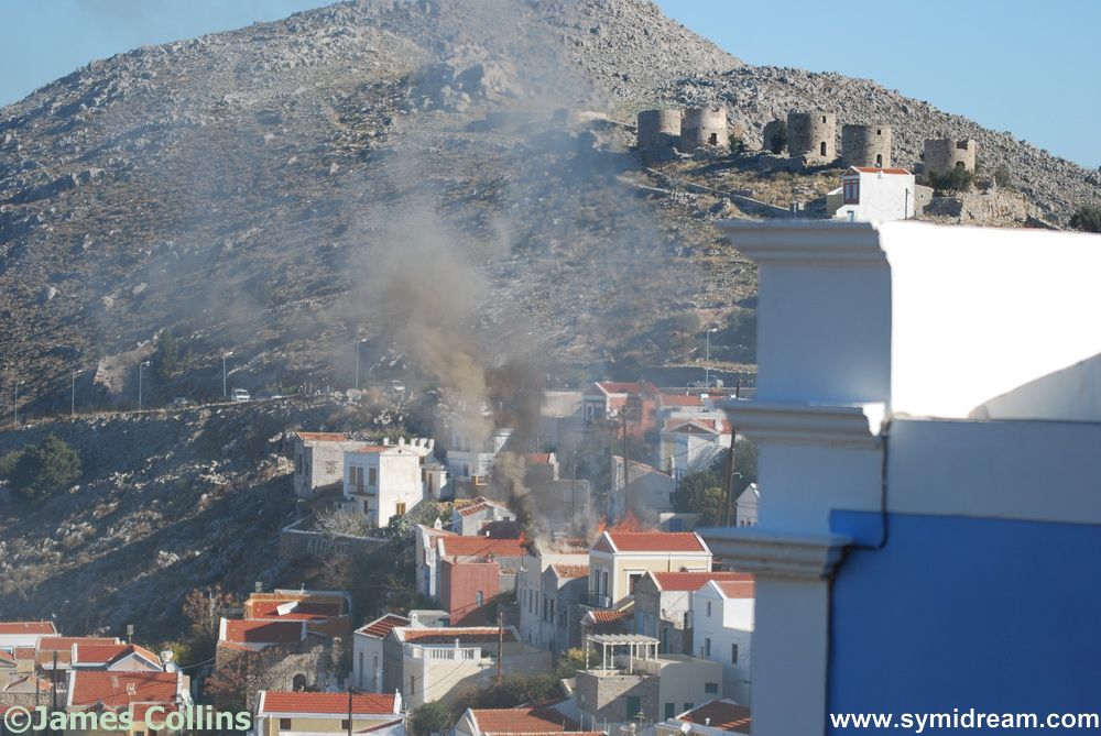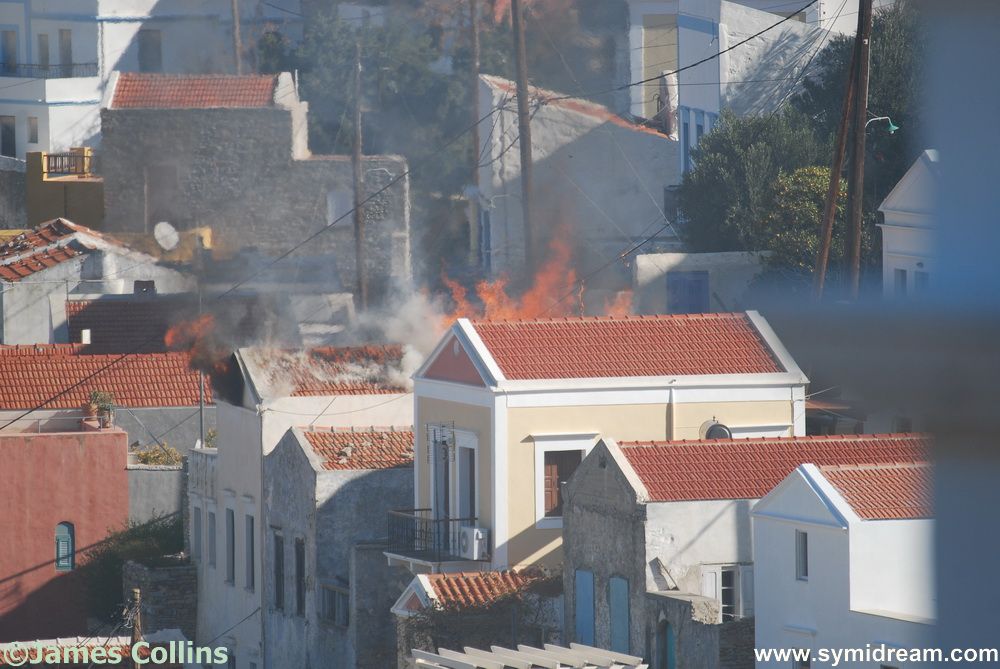 There was a house fire over the weekend, Saturday morning actually, and it was fully visible from all over the village and harbour, as you can see from my couple of photos. No one was hurt; the owner, I have been told, was away, and the house was not occupied at the time. I haven’t heard how it started but, as it was empty, I can only assume an electrical problem of some sort, perhaps rodents chewing through a cable. The building went up very quickly once the flames took hold, there was a certain amount of grey and then black smoke and even from where we are we could hear the glass breaking, the roof tiles cracking and eventually the roof falling in. A horrible thing for the owner to come back to and it does make you wonder, what if? The words house insurance comes to mind. I expect there are plenty of properties around here that are not insured, and it’s not just your possessions and un-replaceables that you would have to replace, there’s the building too. We’re just glad that no one was hurt and there was no wind so it didn’t spread to neighbouring houses.