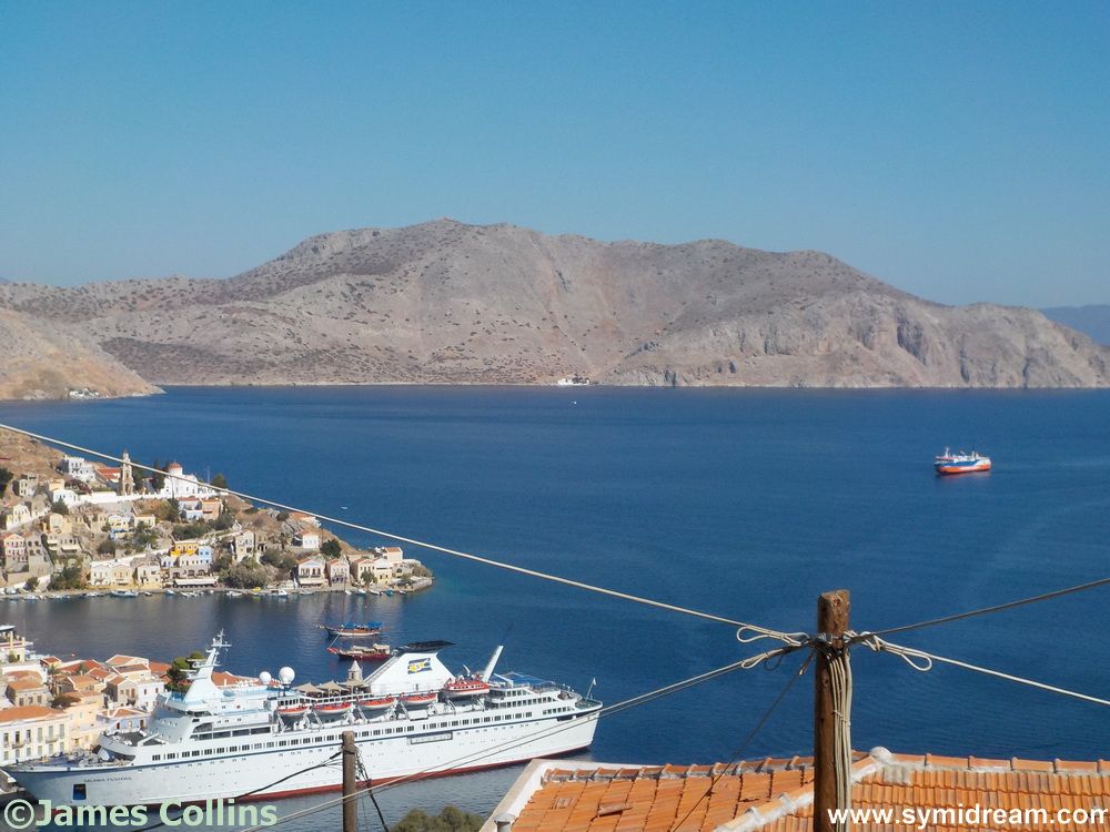 As you can see, a bit of boat activity yesterday. The cruise ships are still coming in, summer isn’t over just yet! We had one in on Wednesday night for three hours and then this one in on Thursday. It was still parked up as the Panagia wanted to come in, so the ferry had to hang about to at sea for a while until the Sea Dreams boat moved.