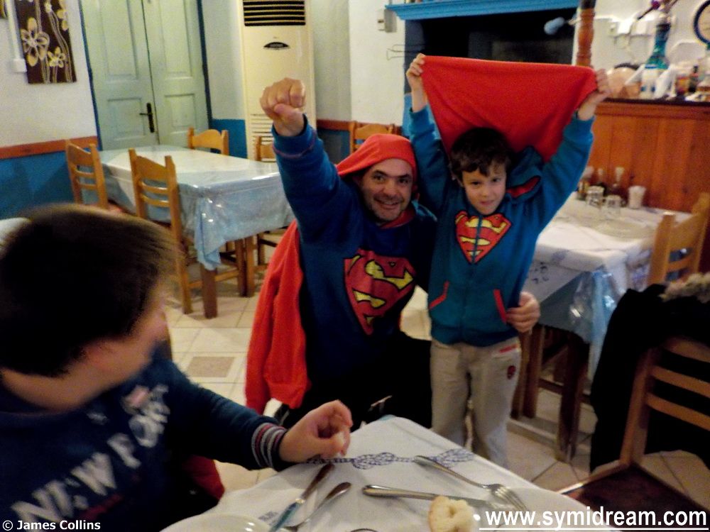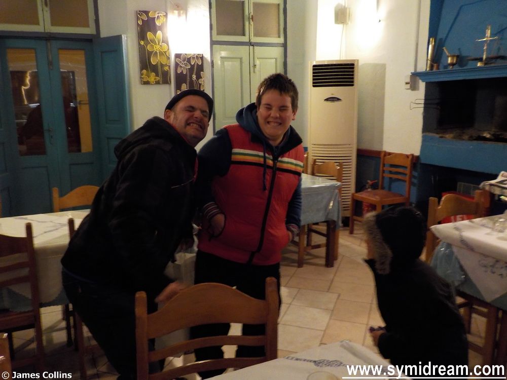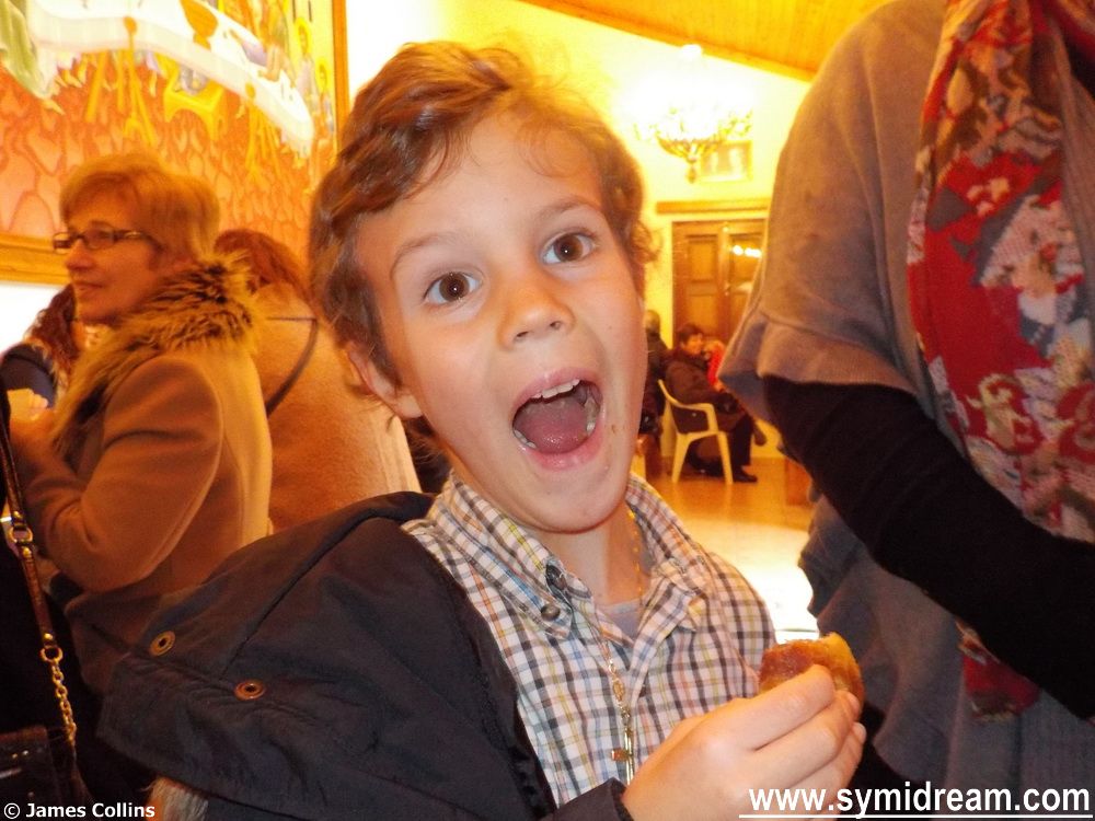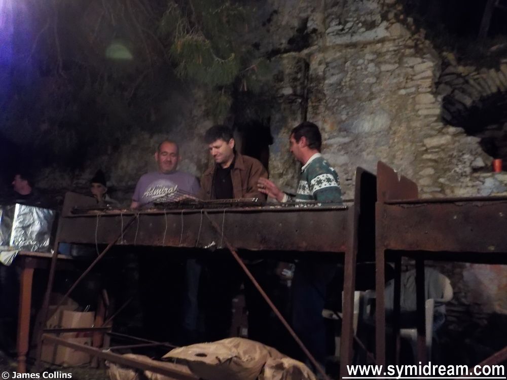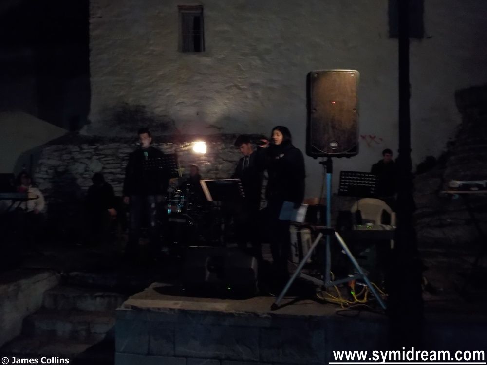 The party celebrates ‘smoke Thursday’, the traditional day for eating meat before Lent starts in a week or so’s time. The town hall provide the souvlakies and the band this year were some of the music students – I am not sure if they are from the Symi Music School, or the general school, or have private tuition, I guess perhaps all three. They were great, and it’s really heart-warming to see and hear young, talented people, doing so well. They entertained for a good two, maybe three hours, with traditional dances and other songs with drums, bouzouki, accordion and guitars. All the made for a very special night, and the free wine helped slightly too.