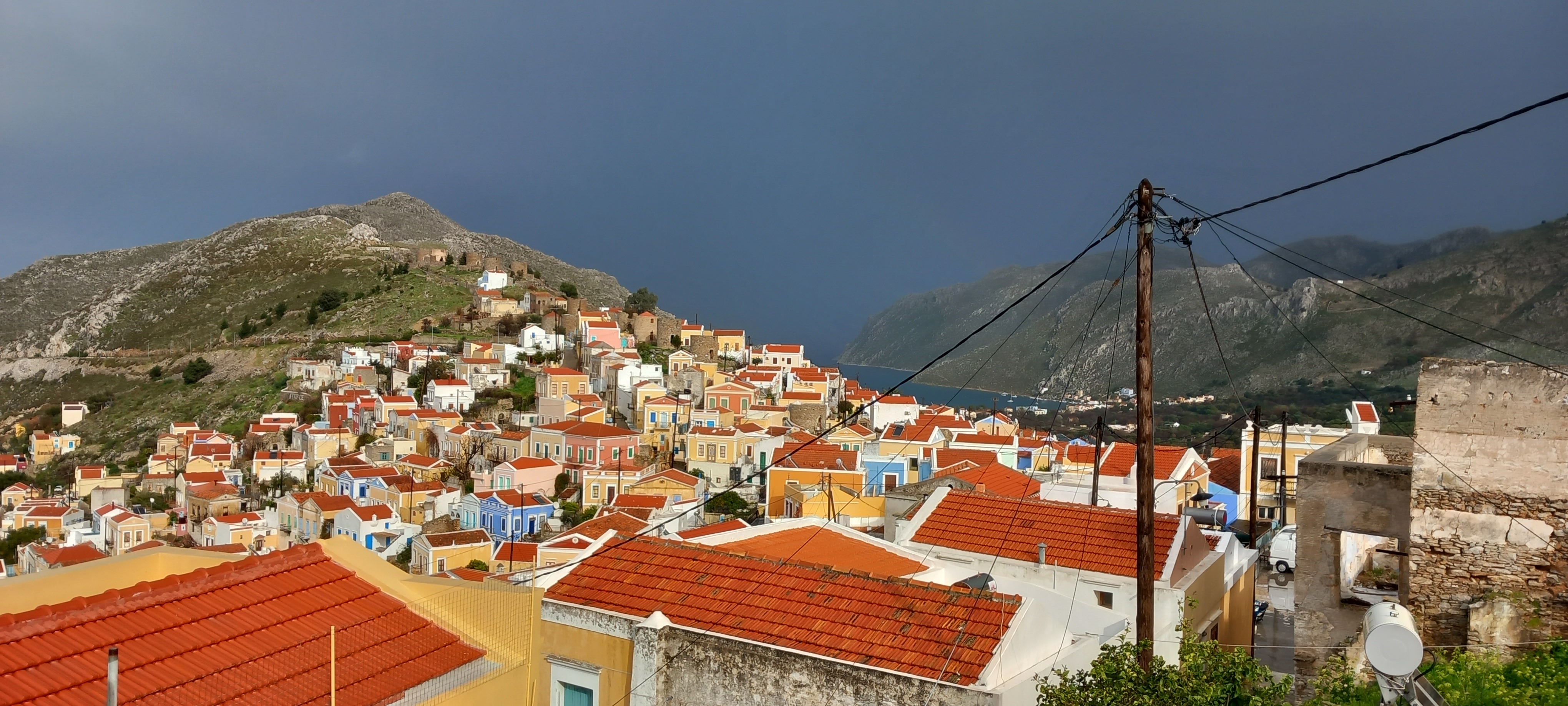 Weather check. Wet and stormy on Friday, so bad that there were no boats, so I was right to change my appointment in Rhodes; I’d never have got there in time. Better over the weekend, but still cloudy, warm, 80% humidity on Sunday morning, though a bright and clear day, and the wind dropped. Today’s tasks include buying boat tickets for Wednesday, only €11.00 return with the Blue Star after my discount, and with my M.A.N. card, I’ll eventually get some of that back into my bank. The doctor’s checkup will cost me €20.00 under my insurance, and if I have a giros for lunch and do nothing for the rest of the day but walk, the whole day away should cost me no more than €40.00. You can bet it will, though, because it’s a 10-hour day from getting on the boat to getting off, and all for a one-hour appointment, if that, so what else can one do but shop? I can’t even do that as funds currently don’t allow, so I intend to wander as I wait for the day to pass.