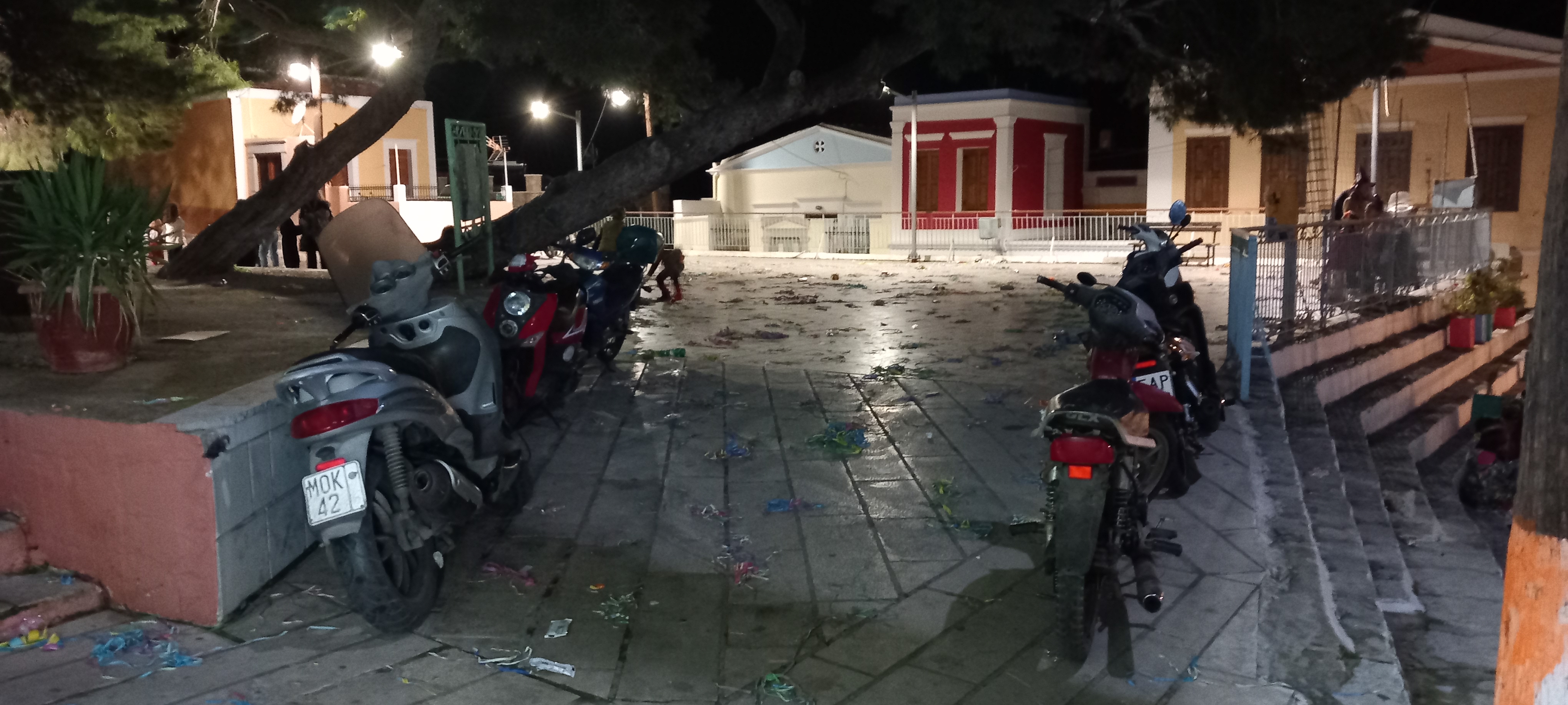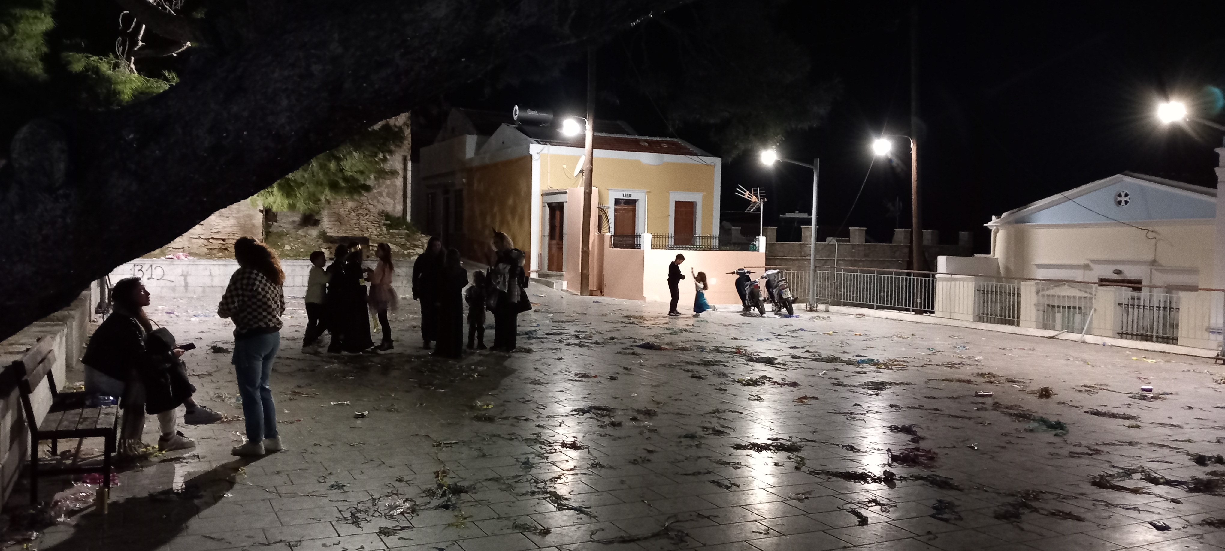 The village square has seen some party action this weekend. I assumed it was something to do with the carnival held just before Clean Monday, but then Clean Monday isn’t until March 18th. The Patras Carnival apparently started on January 20th and runs until March 17th, which seems like a long day out, but I’d not heard of any arrangements for our festivities here. Perhaps it was a birthday or other party, as last night, the kafeneion was blasting out up-to-date music (Boney M and La Bamba). There were paper streamers everywhere, and signs of a silly-string fight left behind as evidence of a good time had by all.