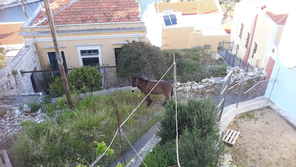 In the last few weeks, we’ve seen a hoopoe fly past the house, the chickens from up the road have explored beyond their usual neighbourhood, and at the weekend, we had a stray mule in the ‘front garden.’ He’d slipped his tether, and that could have happened at any time, but the same day, I saw a hooded crow on the telegraph pole a few feet from the balcony. I’ve only seen them in Rhodes before, and never that close to the house. We often see and hear ravens, and even they have been venturing nearer to the buildings, as have the sparrows who were having a good old chinwag on our balcony railings on Saturday. Again, the first time I’ve seen them do that. I shall keep my eyes peeled for other unusual sights and keep you informed. Meanwhile, I will leave you with a couple more images from a spring/early summer walk to Pedi (and the visiting mule).