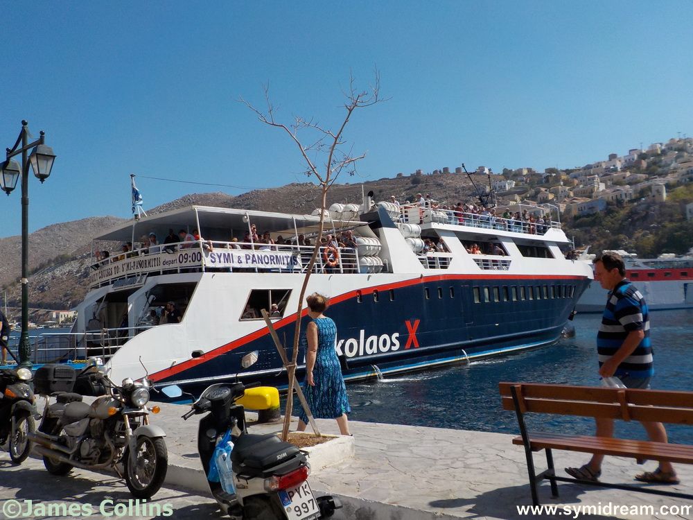 Just a few photos today – I’m just back home after a lovely lunch in Yialos and need to sleep it off, so I’m not hanging around long, just long enough to say… Very busy in town today, even with only one boat in Nireus was packed, so were several other places, the harbour front was alive with people… and then two more boats came in; the usual day trip boats. Good to see things so busy.