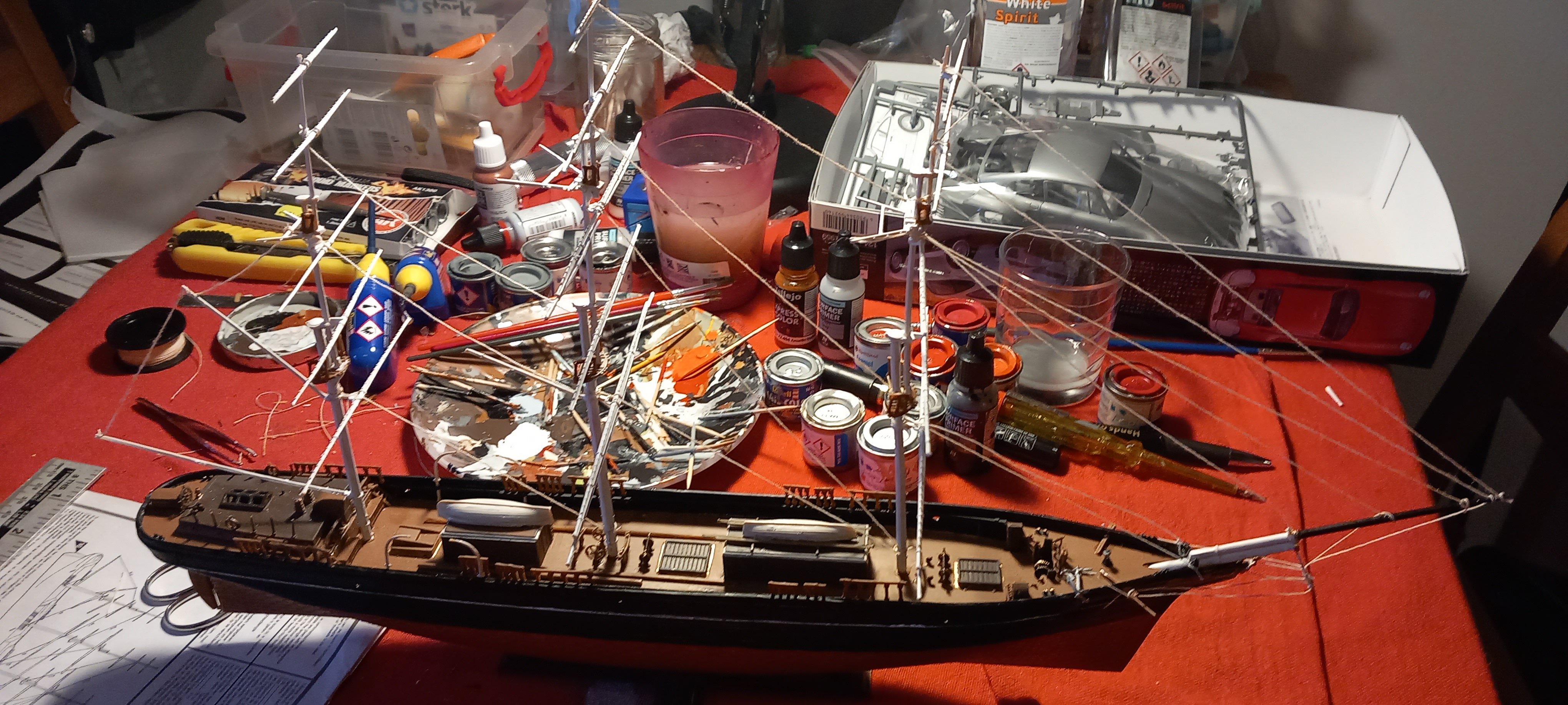 Instead, I’ll go into the weekend with a headache (the glue fumes from yesterday’s modelling session, and, probably, wine), and with a list of things to do today to prepare for tomorrow. We’ve also been redecorating the courtyard as the woodwork needed doing before it got ruined by the rain. I bought a tin of paint, the colour label of which closely matched what is already here, only to discover the actual colour is far more green in real life, it’s a kind of… well, I’m not sure if it’s turquoise or what, but you’ll get to see as soon as everything’s finished. So, there may be more painting happening on Sunday as well. That’s then, this is now, and I have to go and promote some books.