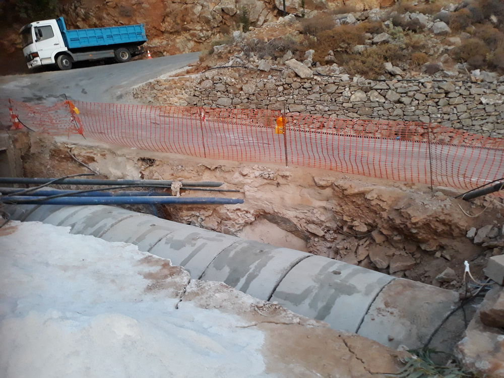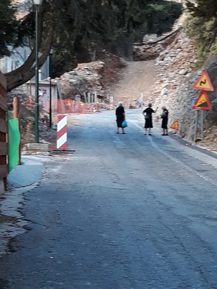 About an hour later, as the sun was coming up, I set off up the hill for a walk. The waterworks continue, at least I guess that’s what they are. Workmen have been beavering for weeks now, clearing channels from the mountain, so we avoid a repeat of the devastation of a couple of winters ago when parts of houses were lost, steps were swept away and there was loads of damage. At the corner to Agia Marina church, there are now huge concrete pipes going in beneath the road/junction and plenty more lined up to be added elsewhere. I continued up to To Vrisi (3,500 steps and 1.5 miles each way, if you were interested).