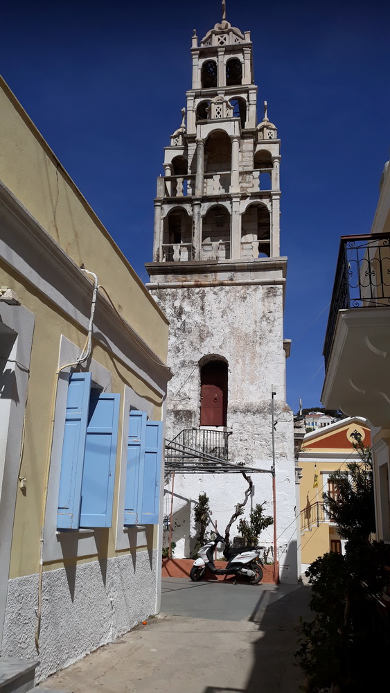 The church tower of St John in Yialos. I was waiting outside the surgery for my vaccination the other week and thought I’d just take a snap while I was there. The vaccinations have been well organised. You arrive, the nurse is at the window and checks you off, asks you to wait, and at your time, you are called in, monitored, asked a few questions and painlessly jabbed. Then there’s a waiting period (inside) in case you suffer any immediate effects, and when all is well, you can go. I expect it is like this all over the world, though not everyone will have this view while they are waiting.
